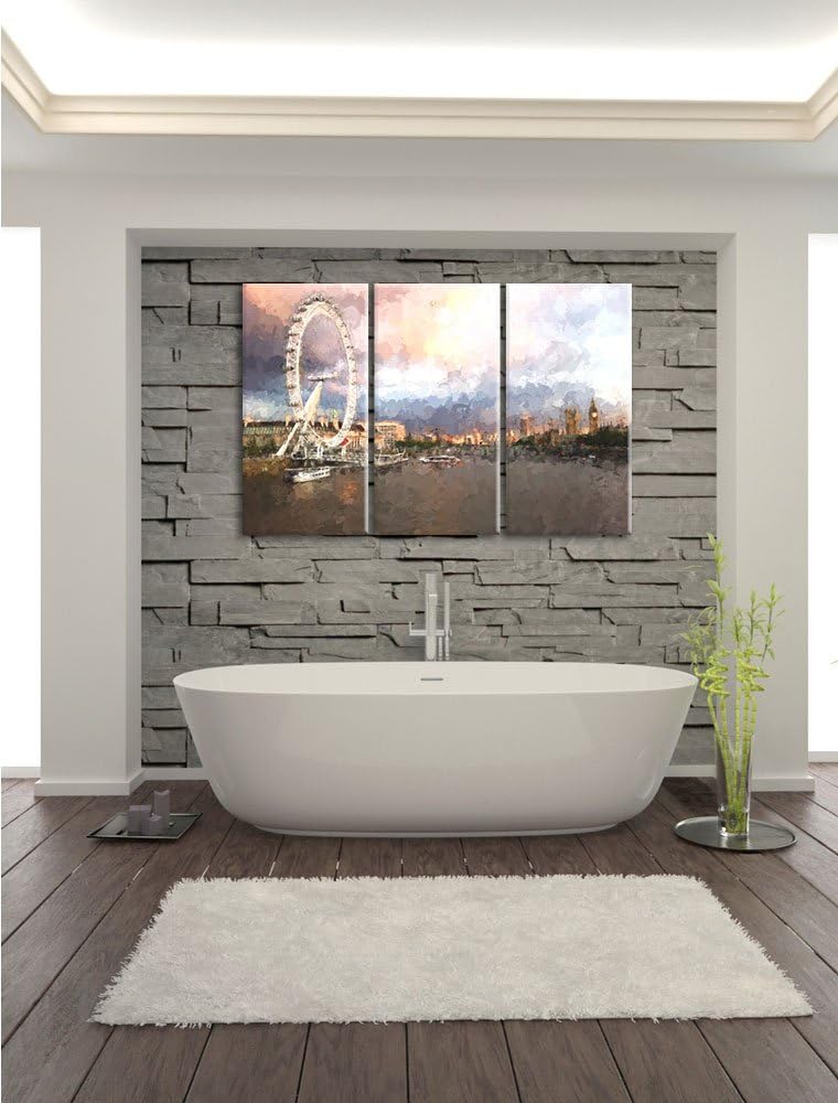 Pixxprint Riesenrad, London Eye Malerei Effekt 3-Teiler Leinwandbild 120x80 Bild auf Leinwand