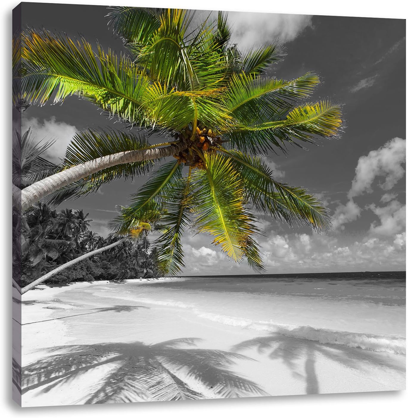Pixxprint riesige Palem über Strand schwarz/weiss, Format: 70x70 auf Leinwand, 70x70