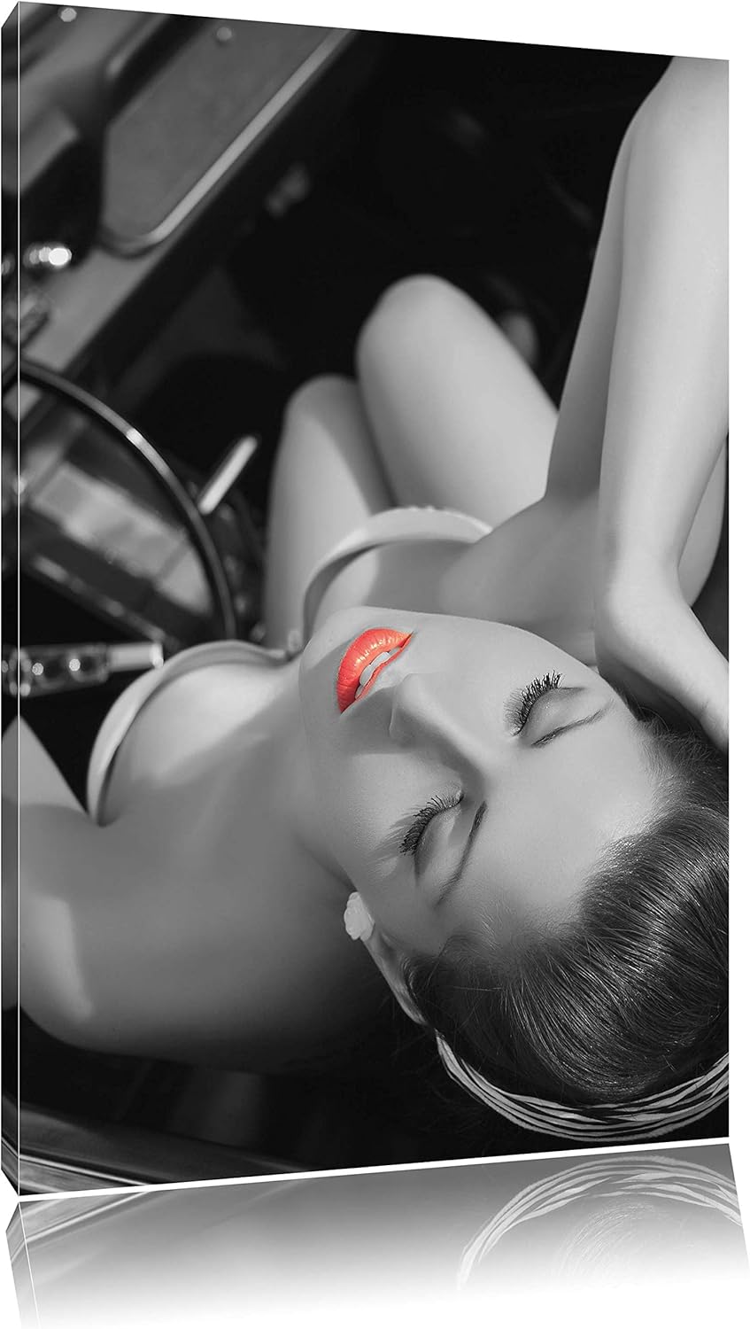 Pixxprint Rockabilly, Retro Style schwarz/weiss / 100x70cm Leinwandbild bespannt auf Holzrahmen/Wand