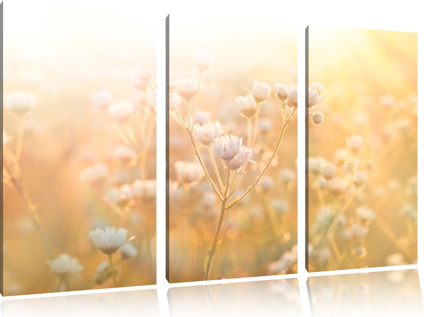 Pixxprint Romantische Blumenwiese als Leinwandbild | Grösse: 3 Teilig (120x80) | Wandbild| Kunstdruc