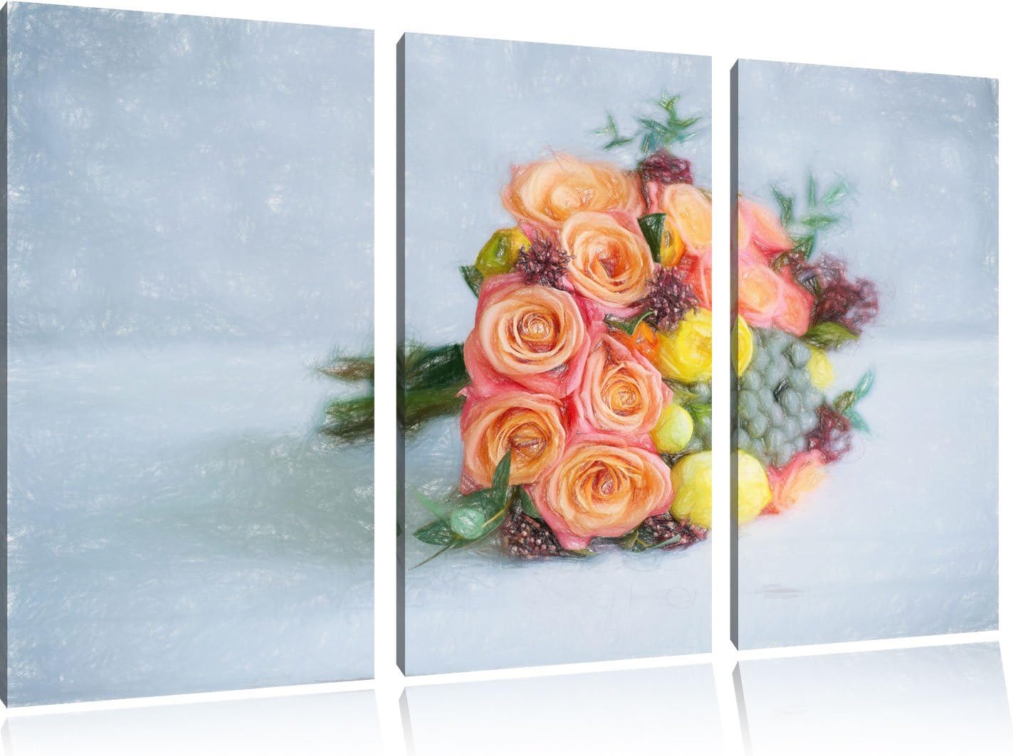 Pixxprint Romantischer Blumenstrauss als Leinwandbild/Grösse: 3 Teilig (120x80) cm/Wandbild/Kunstdru