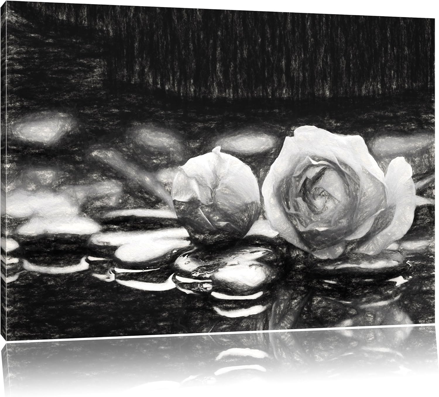 Pixxprint Rosen aus Zen-Steinen als Leinwandbild/Grösse: 100x70 cm/Wandbild/Kunstdruck/fertig bespan