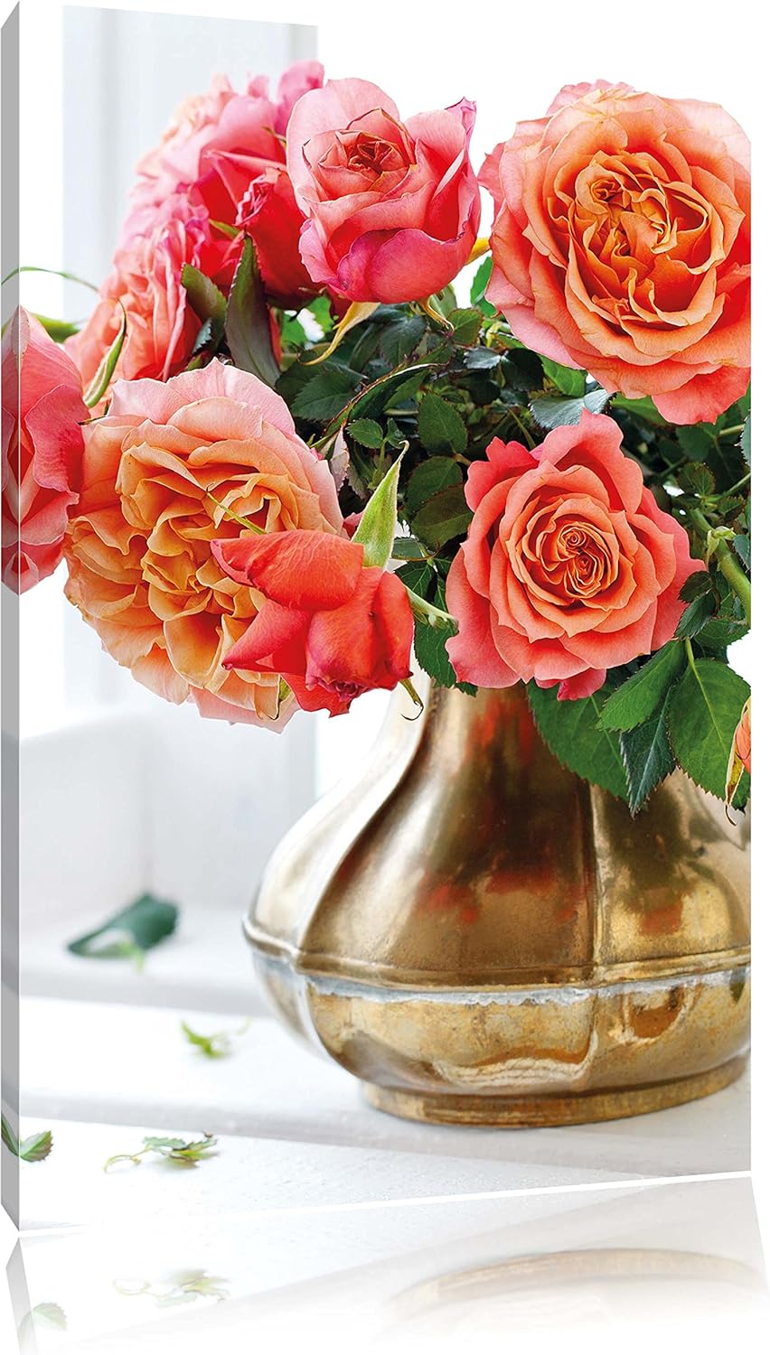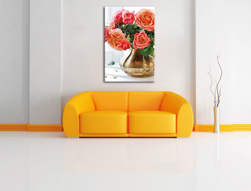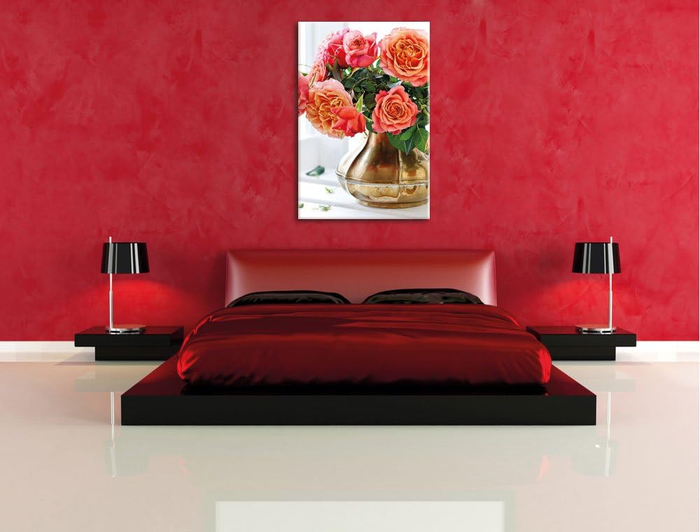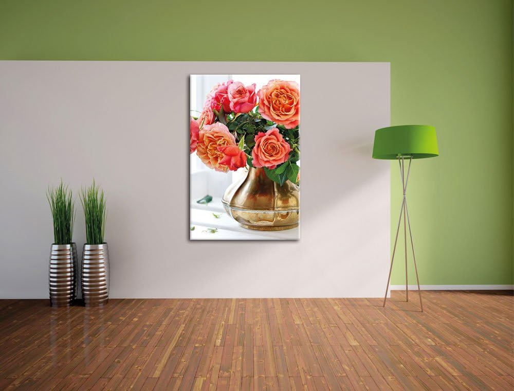 Pixxprint Rosenstrauss, Format: 100x70 auf Leinwand, XXL riesige Bilder fertig gerahmt mit Keilrahme