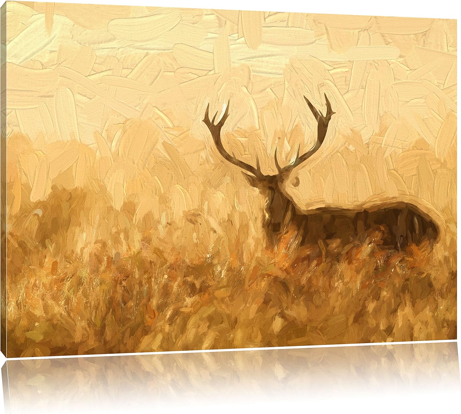 Pixxprint Rotwild Hirsch in Abenddämmerung Kunst Pinsel Effekt, Format: 100x70 auf Leinwand, 100x70