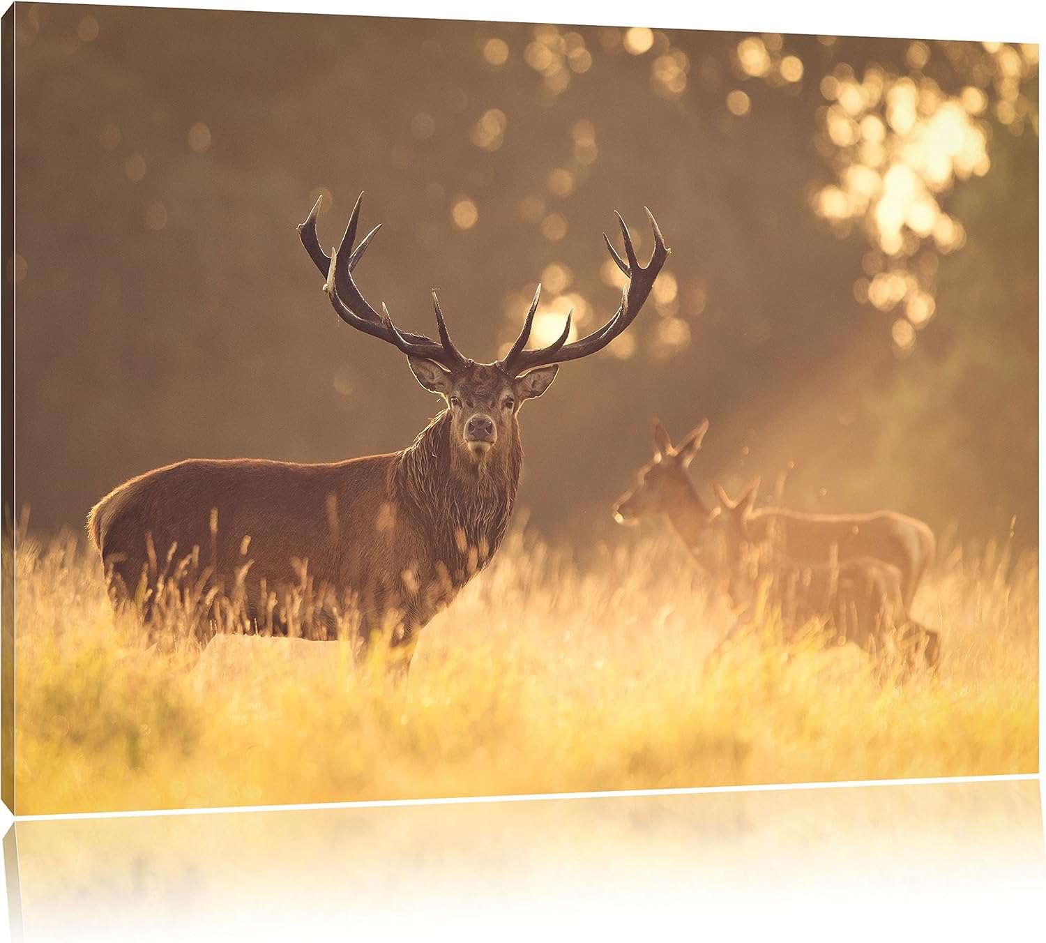 Pixxprint Rotwild im goldenen Morgenlicht als Leinwandbild/Grösse: 100x70 cm/Wandbild/Kunstdruck/fer