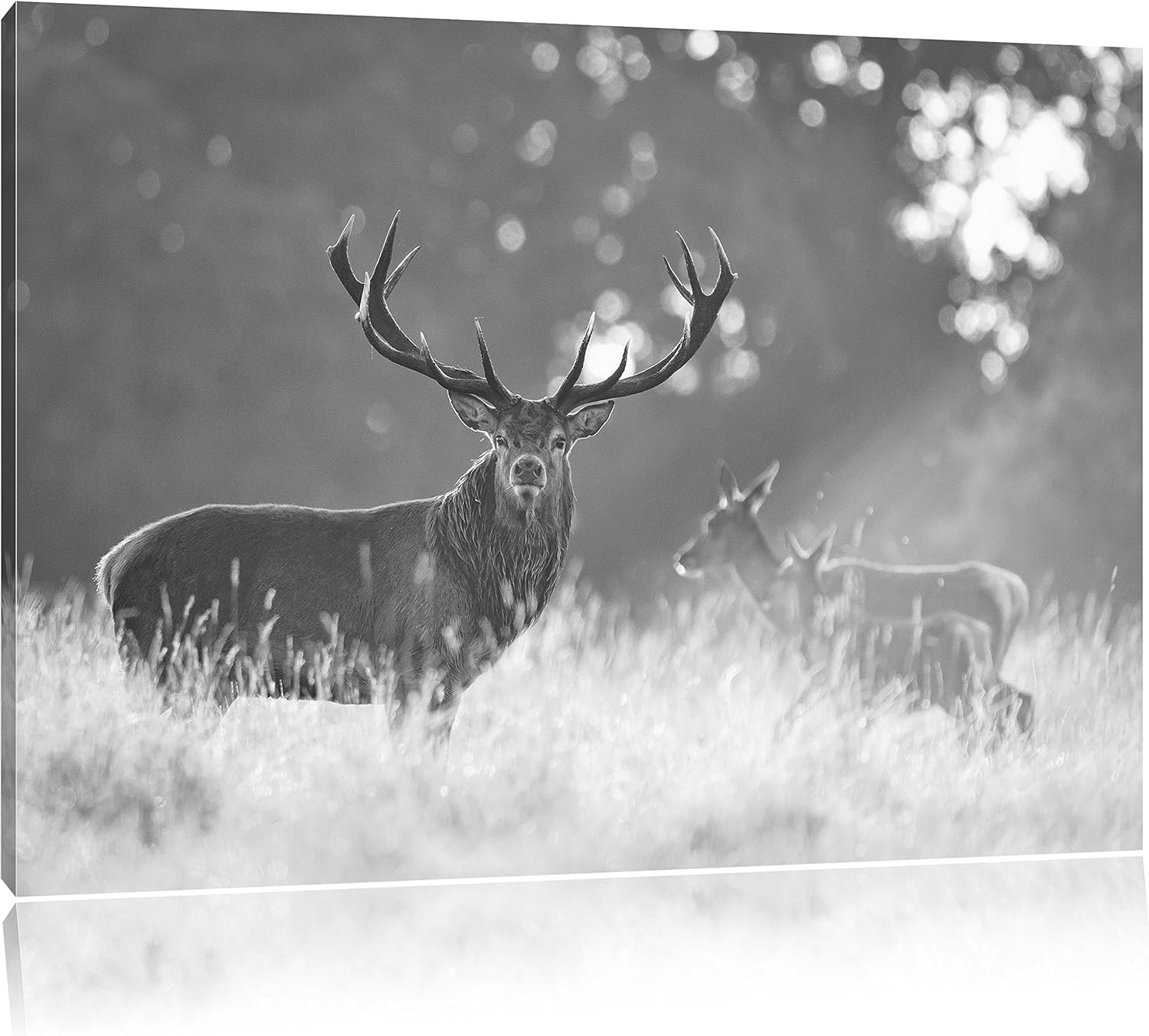 Pixxprint Rotwild im Morgenlicht als Leinwandbild/Grösse: 100x70 / Wandbild/Kunstdruck/fertig bespan