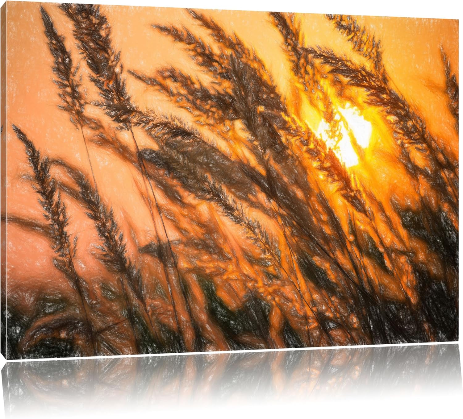 Pixxprint Schilf als Leinwandbild/Grösse: 100x70 / Wandbild/Kunstdruck/fertig bespannt, 100x70