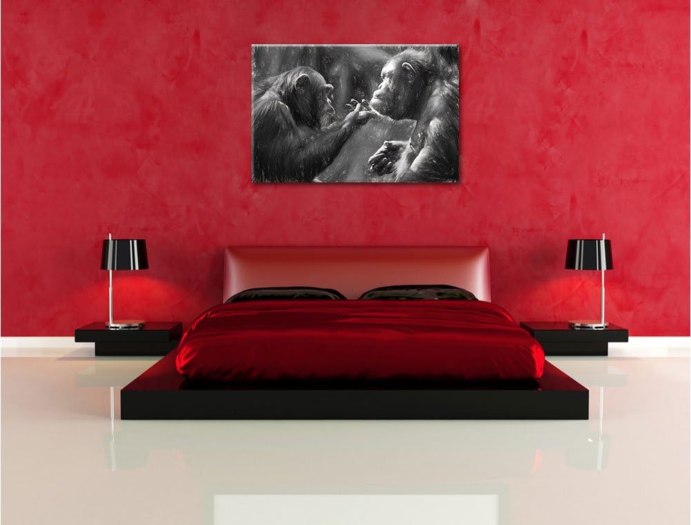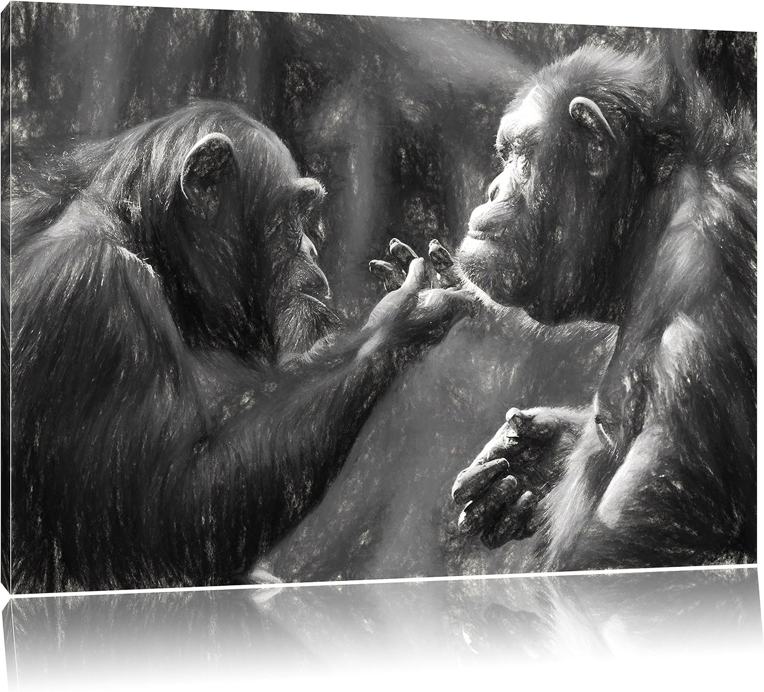Pixxprint Schimpansen Freundschaft Kunst / 100x70cm Leinwandbild bespannt auf Holzrahmen/Wandbild Ku