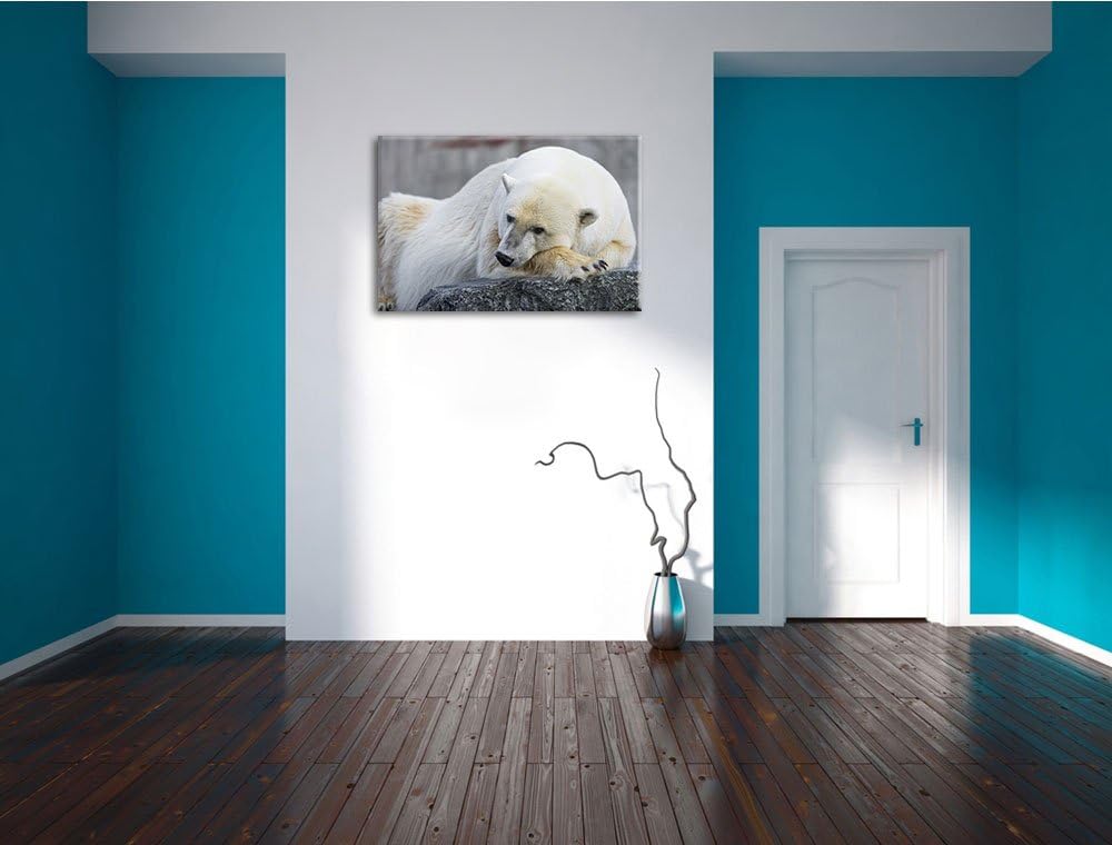Pixxprint schlafender Eisbär auf Leinwand, XXL riesige Bilder fertig gerahmt mit Keilrahmen, Kunstdr
