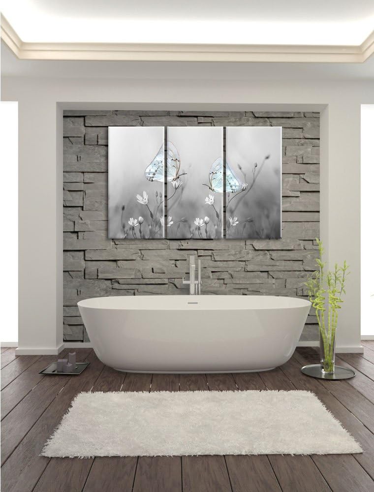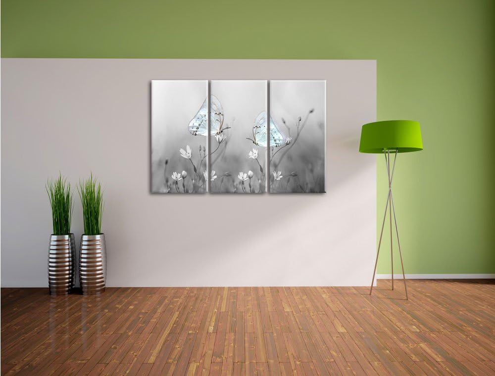 Pixxprint Schmetterling auf kleinen Blumen als Leinwandbild/Grösse: 3 Teilig (120x80 cm) cm/Wandbild