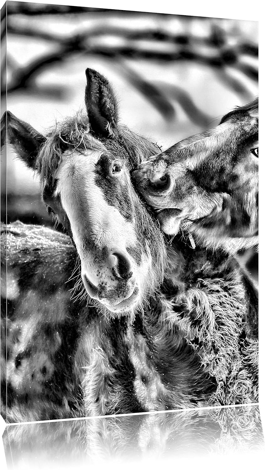 Pixxprint schmusende Pferde / 100x70cm Leinwandbild bespannt auf Holzrahmen/Wandbild Kunstdruck Deko