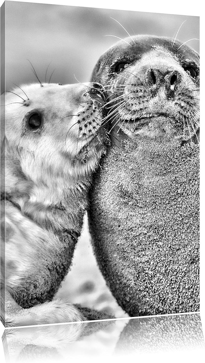 Pixxprint Schmusende Robben als Leinwandbild/Grösse: 100x70 / Wandbild/Kunstdruck/fertig bespannt, 1