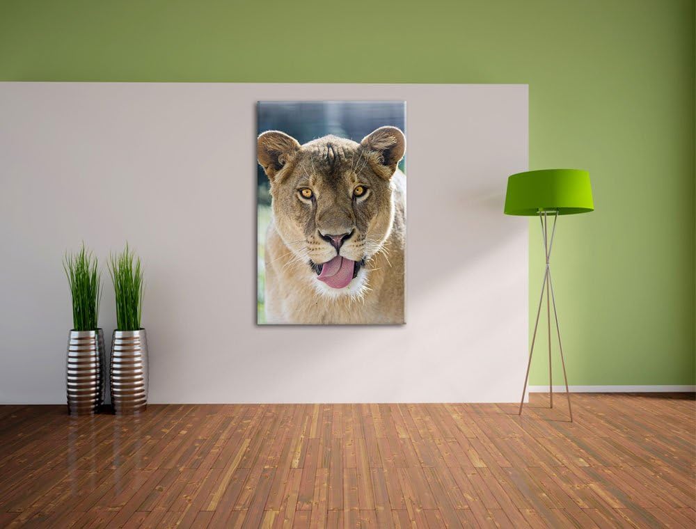 Pixxprint schöne Löwin auf Leinwand, XXL riesige Bilder fertig gerahmt mit Keilrahmen, Kunstdruck au