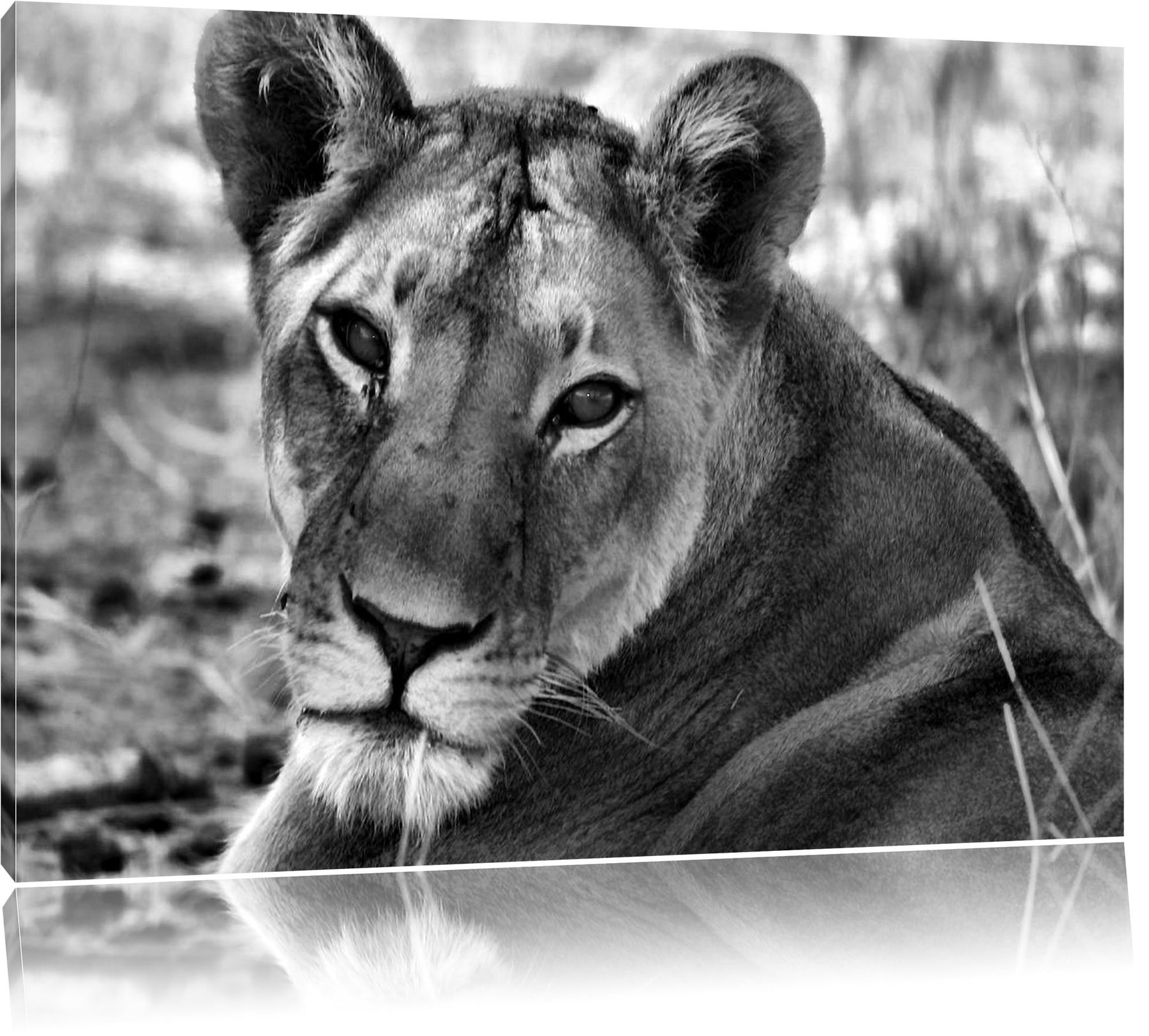 Pixxprint schöne Löwin im Wildgras als Leinwandbild/Grösse: 100x70 / Wandbild/Kunstdruck/fertig besp