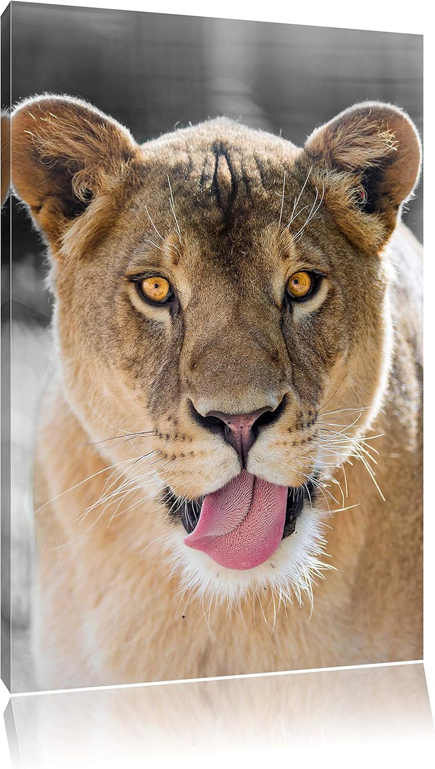 Pixxprint schöne Löwin schwarz/weiss auf Leinwand, XXL riesige Bilder fertig gerahmt mit Keilrahmen,