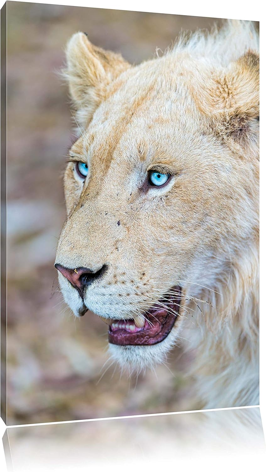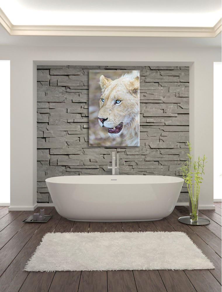 Pixxprint schöne weisse Löwin auf Leinwand, XXL riesige Bilder fertig gerahmt mit Keilrahmen, Kunstd