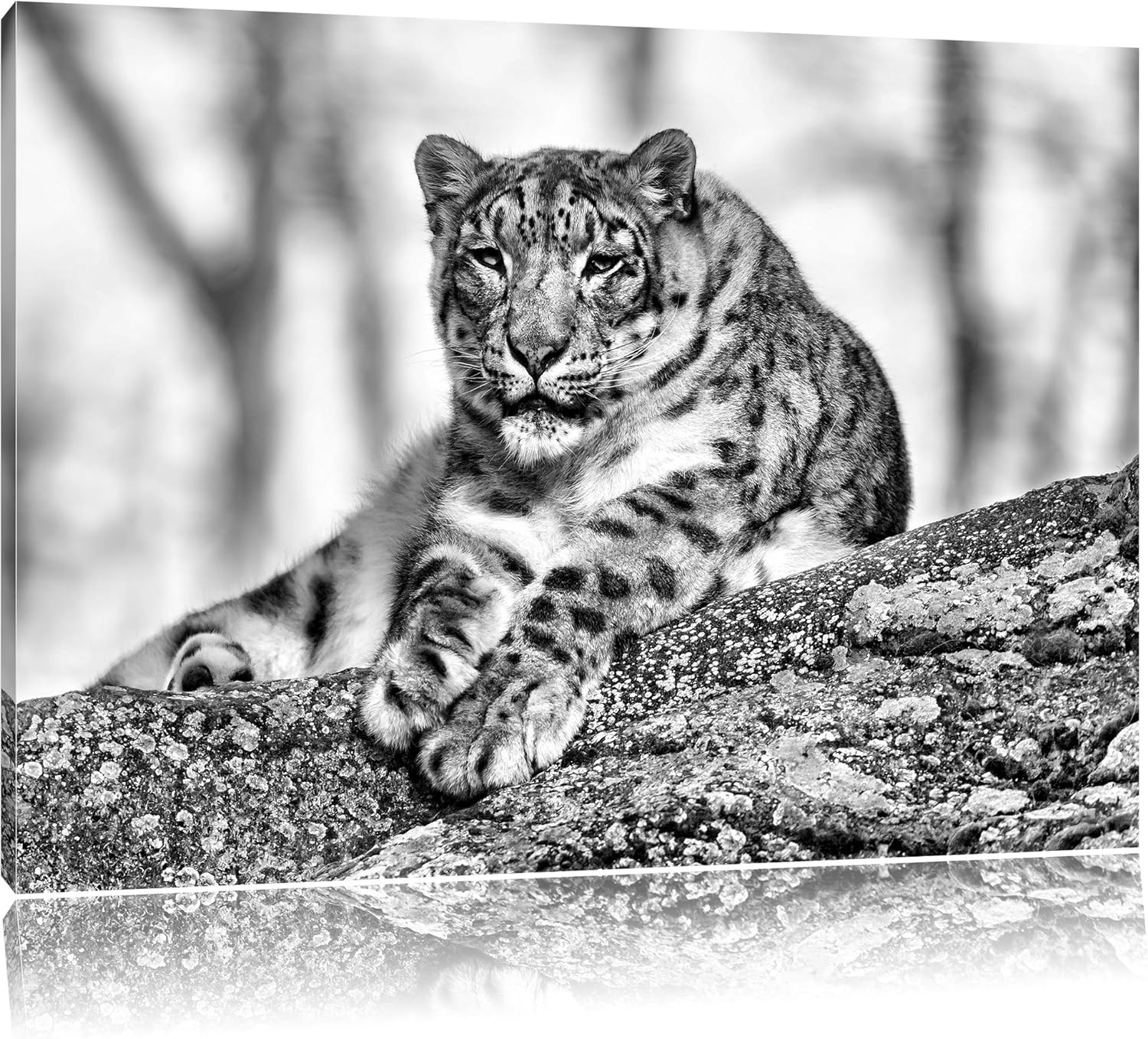 Pixxprint Schneeleopardin / 100x70cm Leinwandbild bespannt auf Holzrahmen/Wandbild Kunstdruck Dekora
