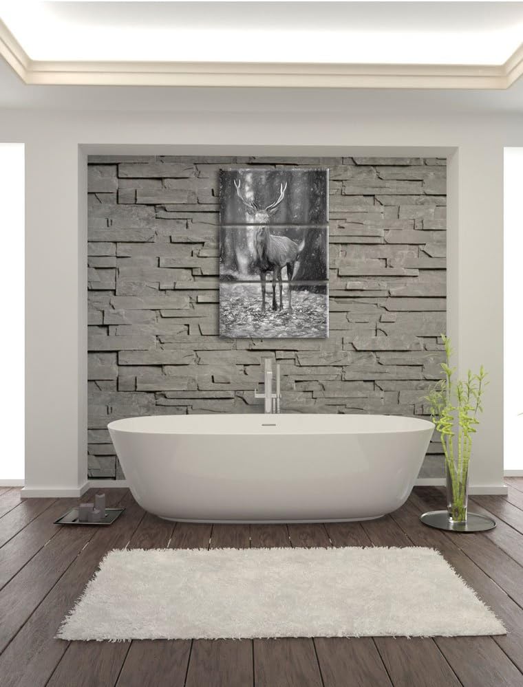 Pixxprint Schöner Hirsch im Wald als Leinwandbild/Grösse: 3 Teilig (120x80) cm/Wandbild/Kunstdruck/f