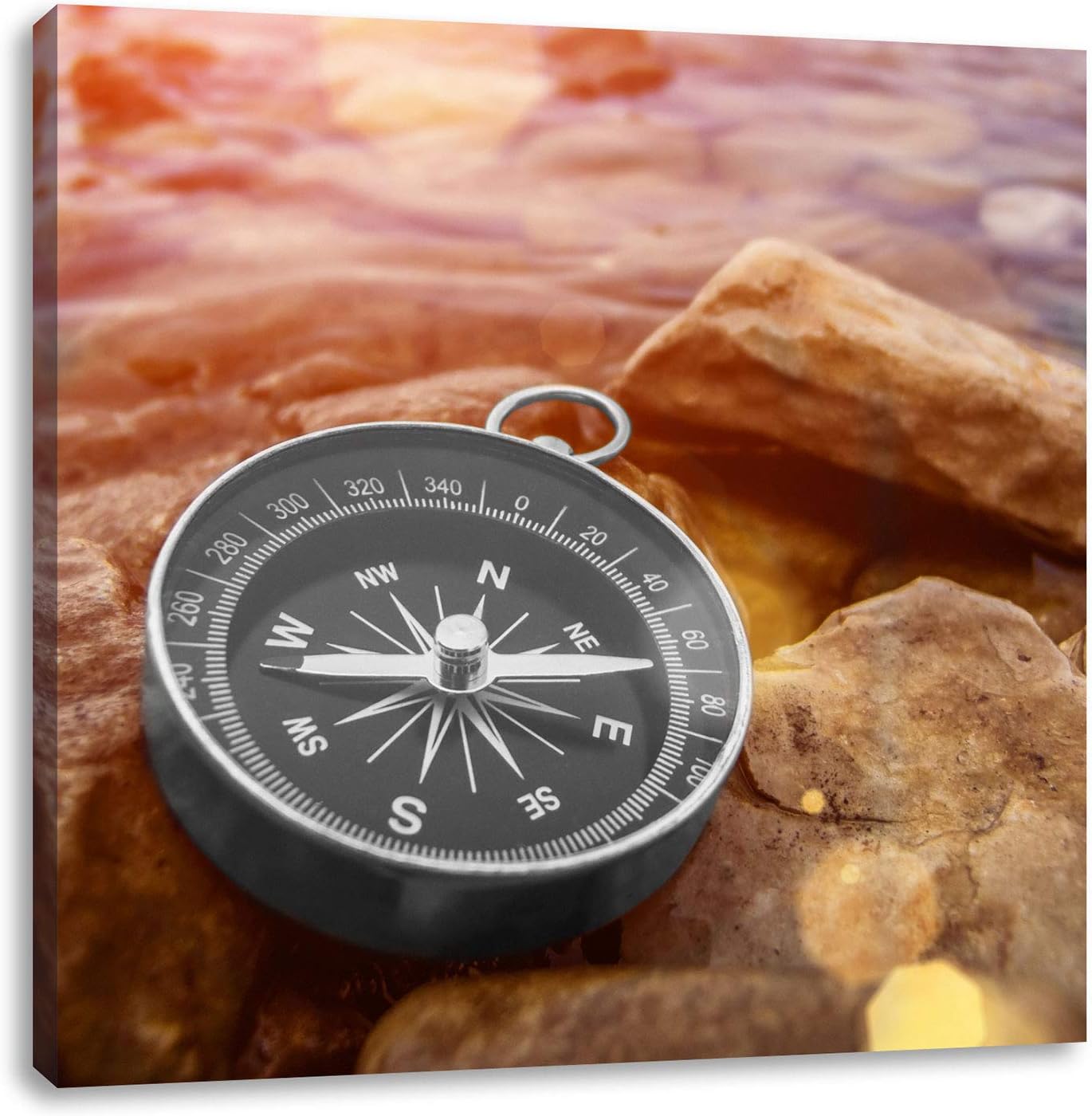 Pixxprint schöner Kompass Heimat schwarz/weiss, Format: 70x70 auf Leinwand, 70x70