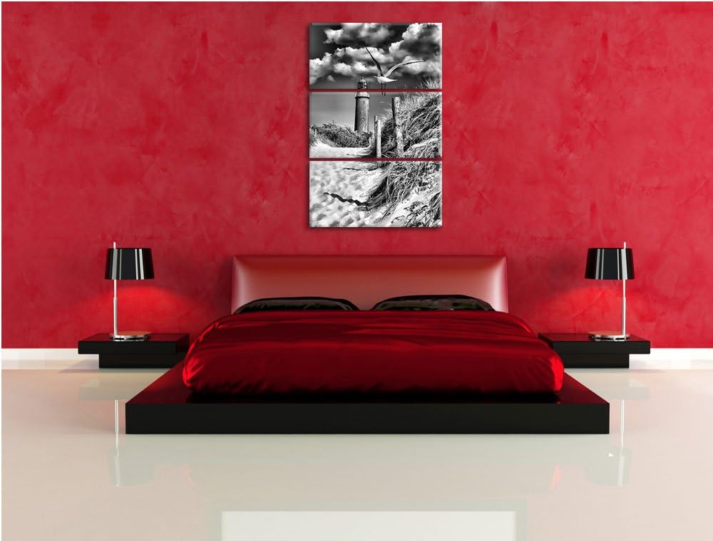 Pixxprint Schöner Leuchtturm am Strand / 3-Teilig/Gesamtmass 120cm Leinwandbild bespannt auf Holzrah