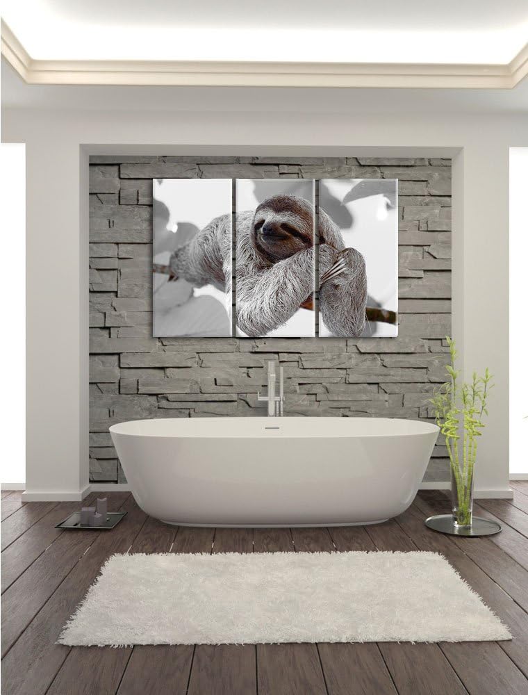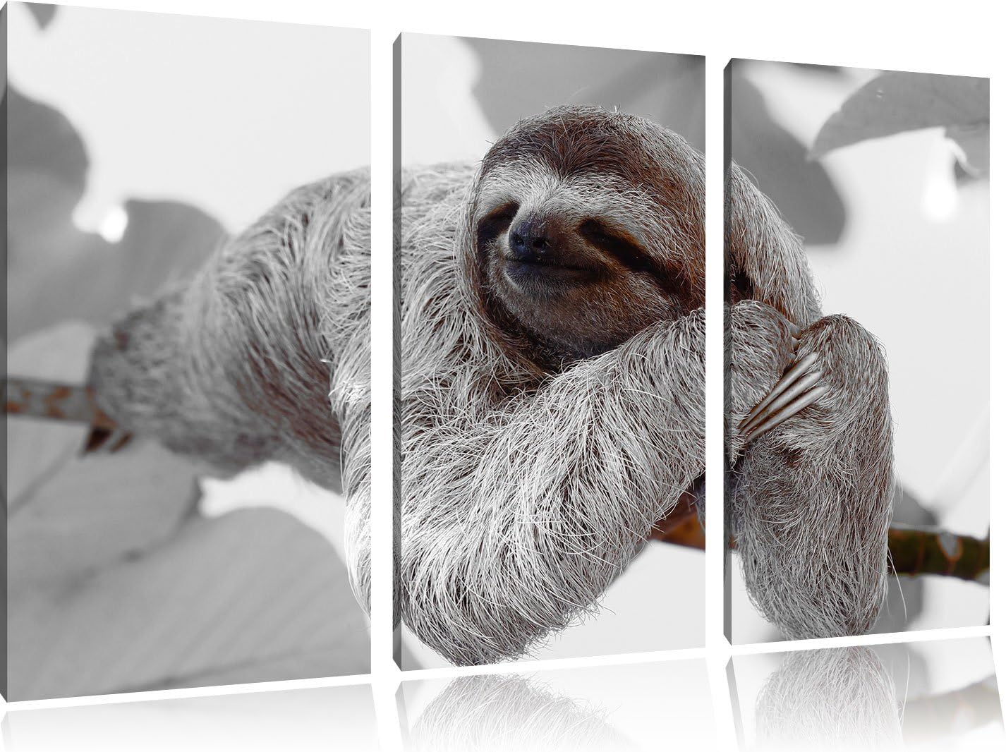 Pixxprint schönes Faultier hängt von AST als Leinwandbild/Grösse: 3 Teilig (120x80) / Wandbild/Kunst