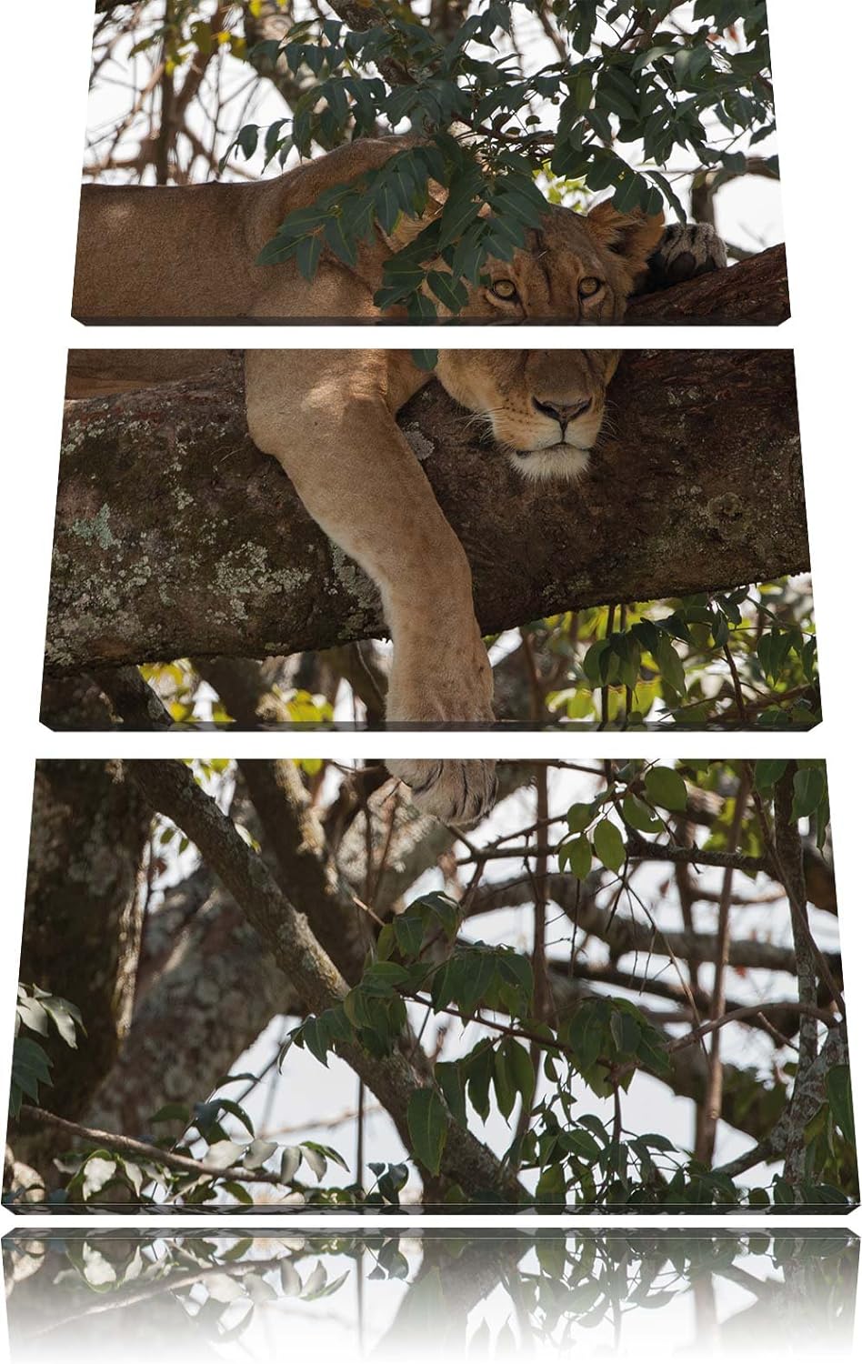 Pixxprint schönes Löwenweibchen schläft auf Baum 3-Teiler Leinwandbild 120x80 Bild auf Leinwand