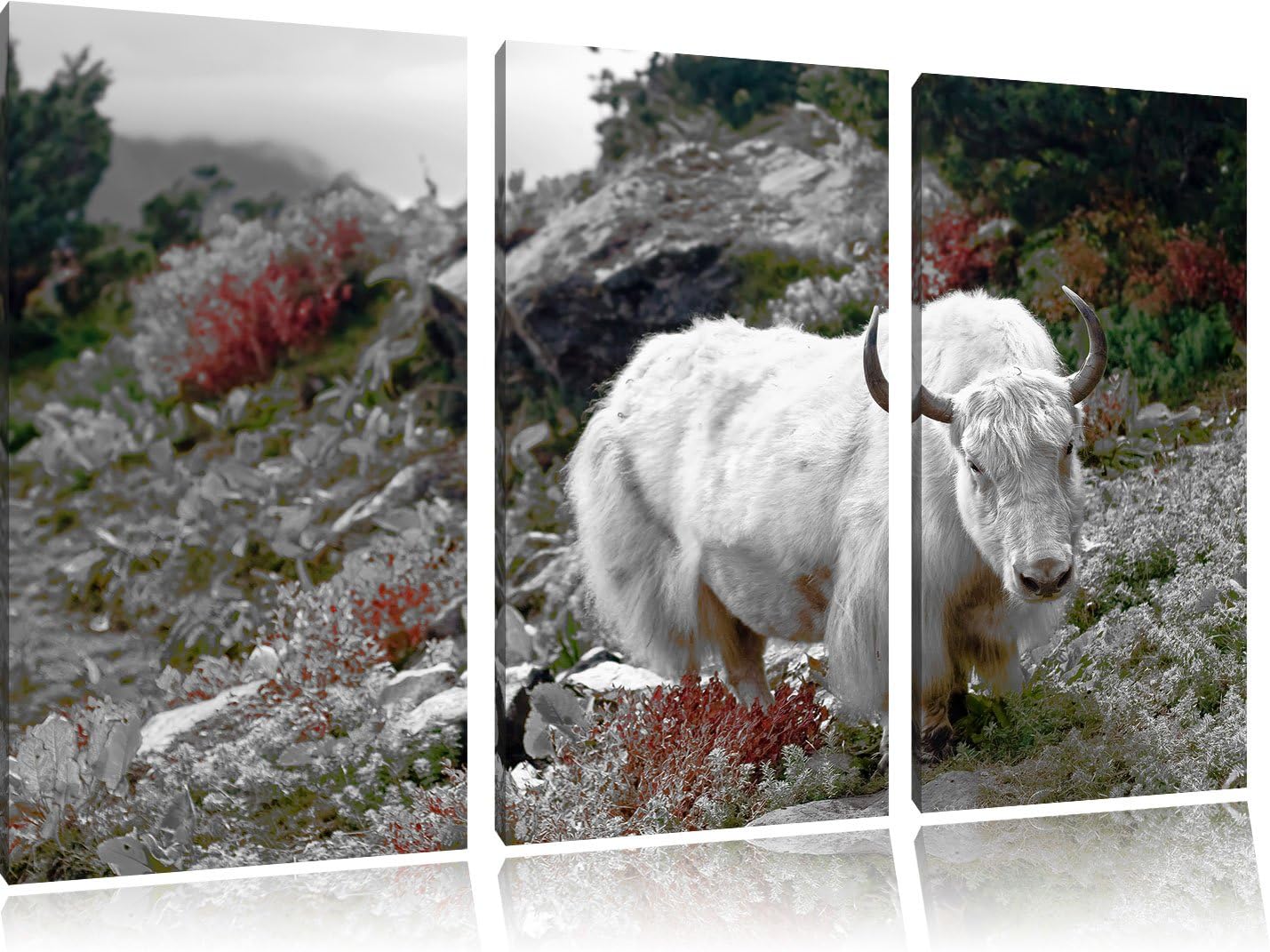 Pixxprint Schönes Yak Himalaya B&W Detail 3-Teiler Leinwandbild 120x80 Bild auf Leinwand
