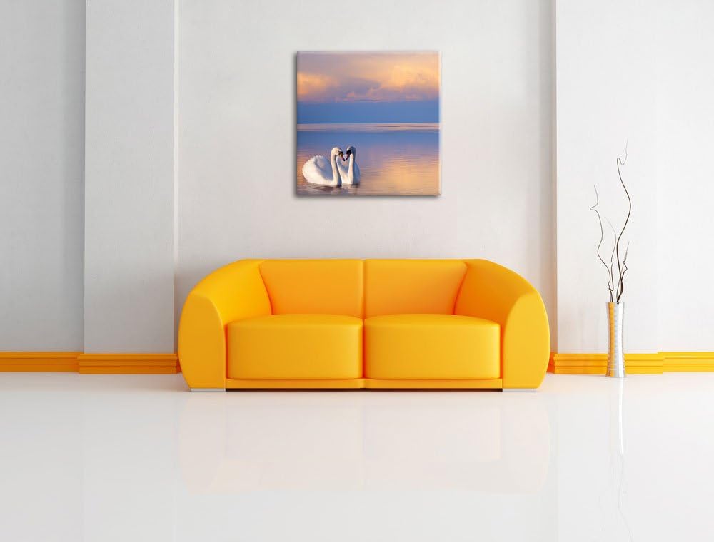 Pixxprint Schwäne in Abenddämmerung als Leinwandbild/Grösse: 70x70 cm/Wandbild/Kunstdruck/fertig bes