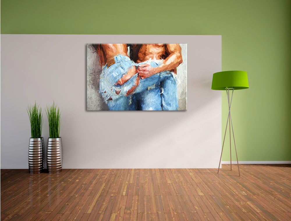 Pixxprint Sexy Pärchen in Jeans als Leinwandbild/Grösse: 100x70 cm/Wandbild/Kunstdruck/fertig bespan