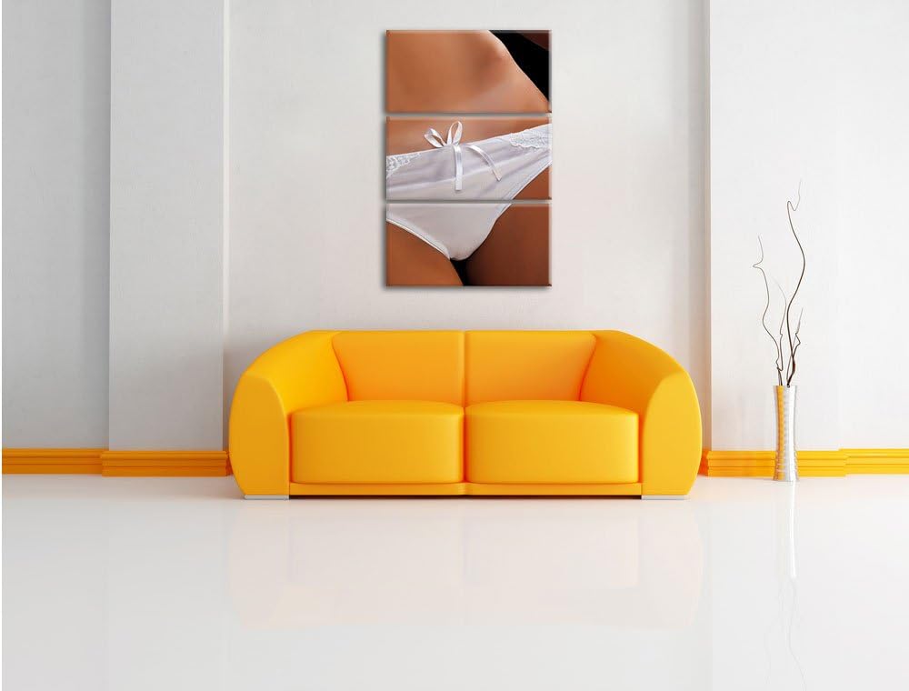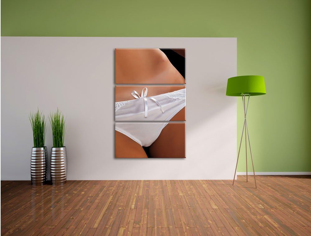 Pixxprint Sexy weisse Dessous als Leinwandbild/Grösse: 3 Teilig (120x80) cm/Wandbild/Kunstdruck/fert