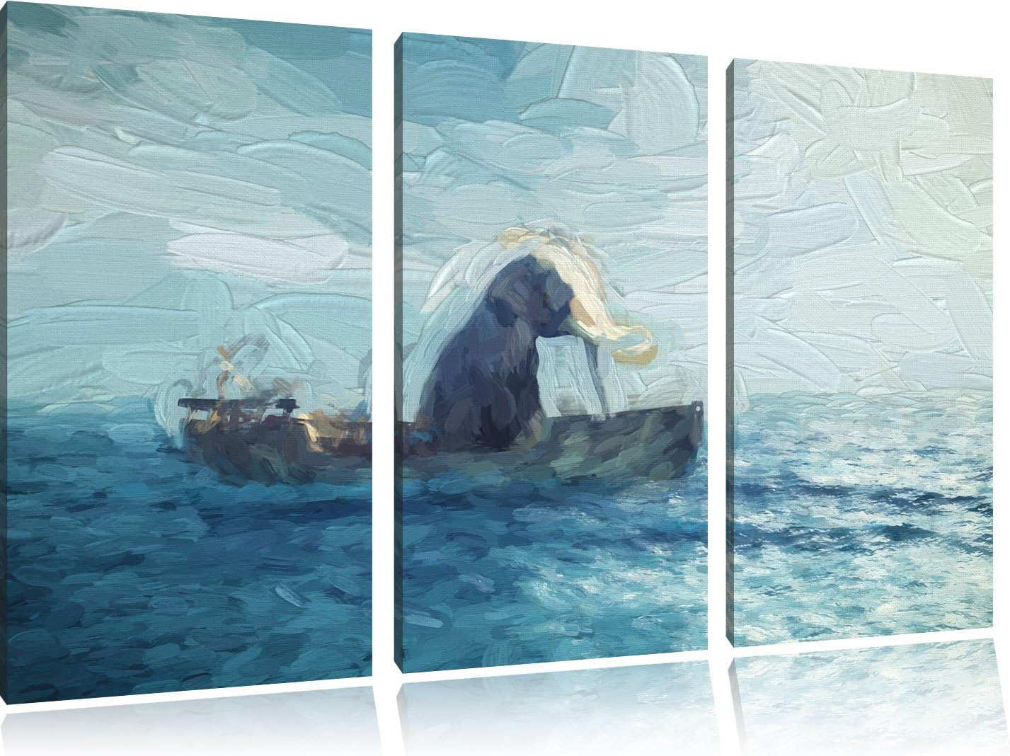 Pixxprint sitzender Elefant im Boot als Leinwandbild/Grösse: 3 Teilig (120x80) / Wandbild/Kunstdruck