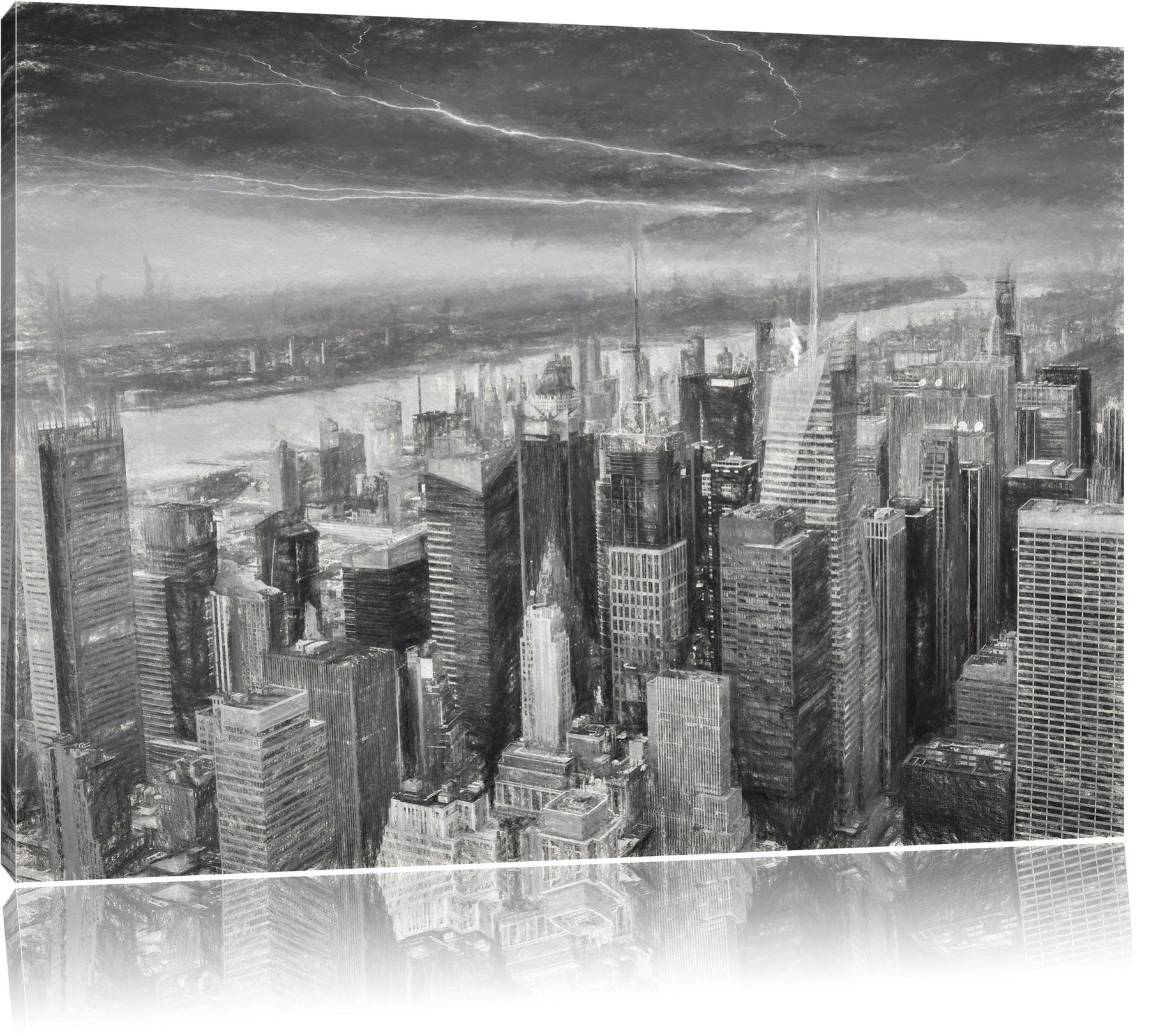 Pixxprint Skyline New York als Leinwandbild/Grösse: 100x70 / Wandbild/Kunstdruck/fertig bespannt, 10