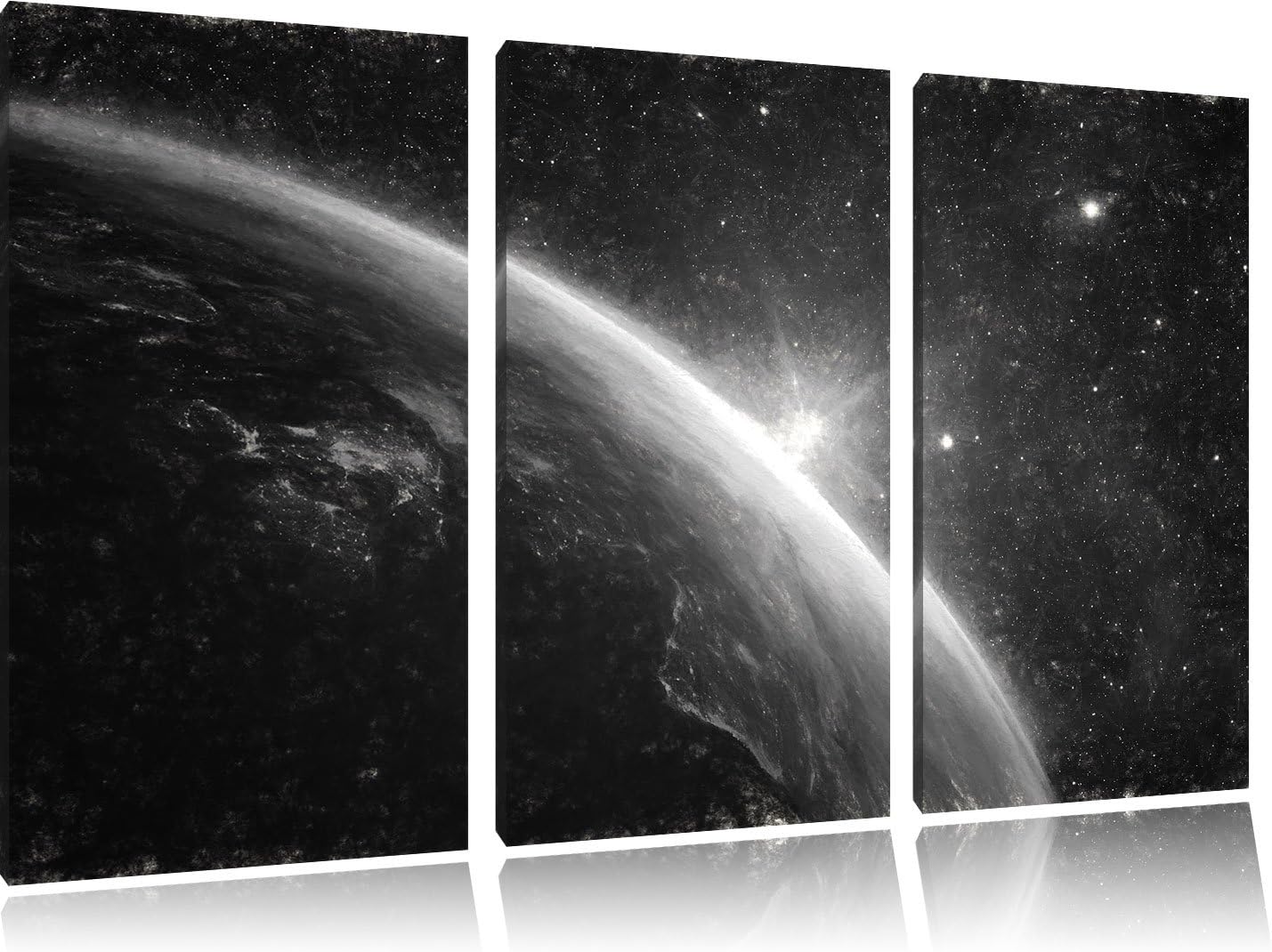 Pixxprint Sonne und Erde im Weltall / 3-Teilig/Gesamtmass 120cm Leinwandbild bespannt auf Holzrahmen