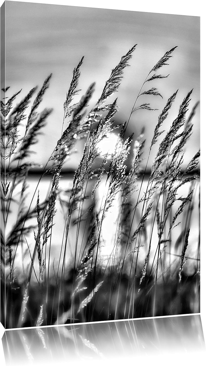 Pixxprint Sonne zwischen Gräsern / 100x70cm Leinwandbild bespannt auf Holzrahmen/Wandbild Kunstdruck