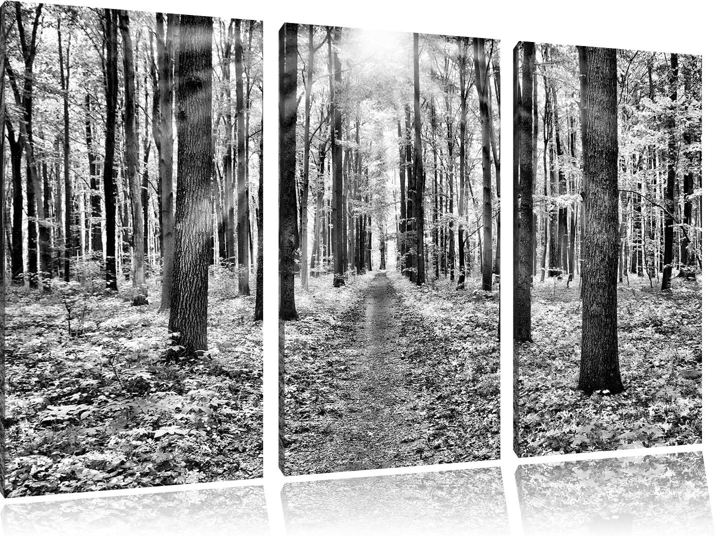 Pixxprint Sonnenlicht Wald / 3-Teilig/Gesamtmass 120cm Leinwandbild bespannt auf Holzrahmen/Wandbild