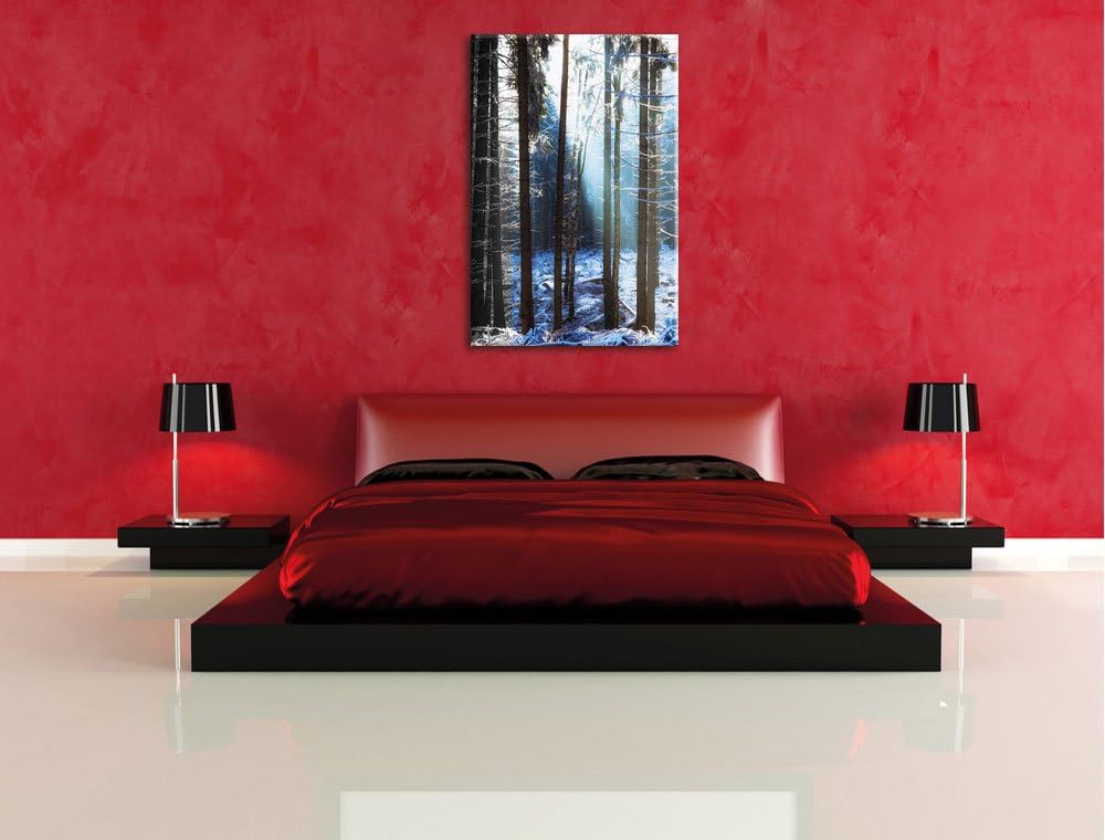 Pixxprint Sonnenschein im Winterwald als Leinwandbild/Grösse: 100x70 / Wandbild/Kunstdruck/fertig be
