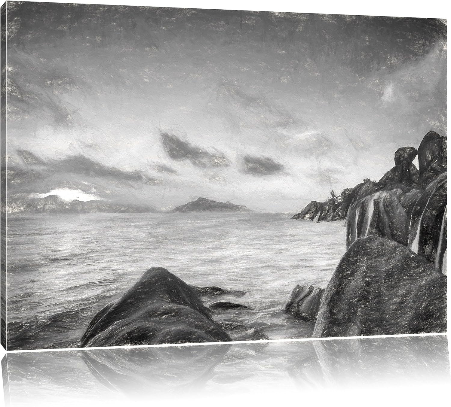 Pixxprint Sonnenuntergang Seychellen Kunst Kohle Effekt, Format: 100x70 auf Leinwand, XXL riesige Bi