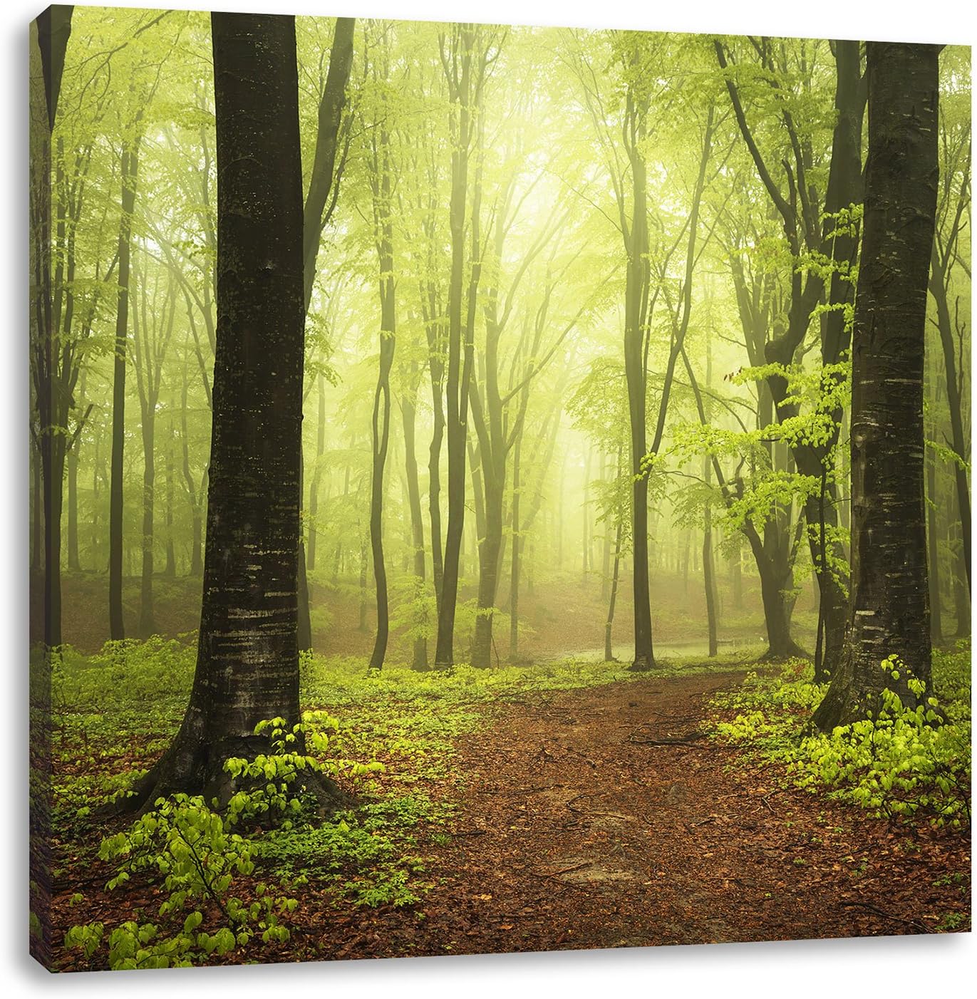Pixxprint Sonniger Weg im atemberaubenden Wald, Format: 70x70 auf Leinwand, 70x70