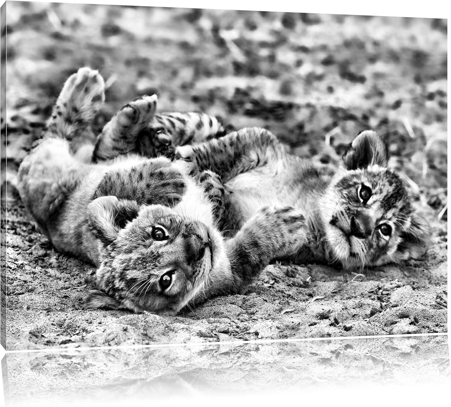 Pixxprint Spielende Löwenjungen / 100x70cm Leinwandbild bespannt auf Holzrahmen/Wandbild Kunstdruck