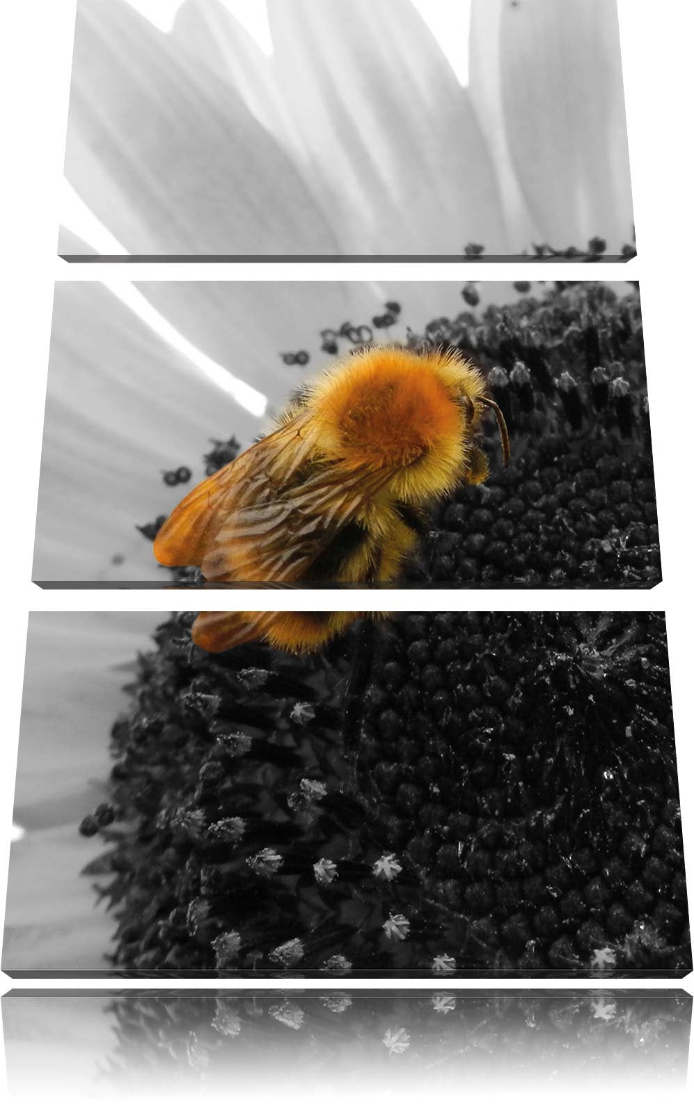 Pixxprint süsse Biene auf grosser Sonnenblume als Leinwandbild/Grösse: 3 Teilig (120x80) cm/Wandbild