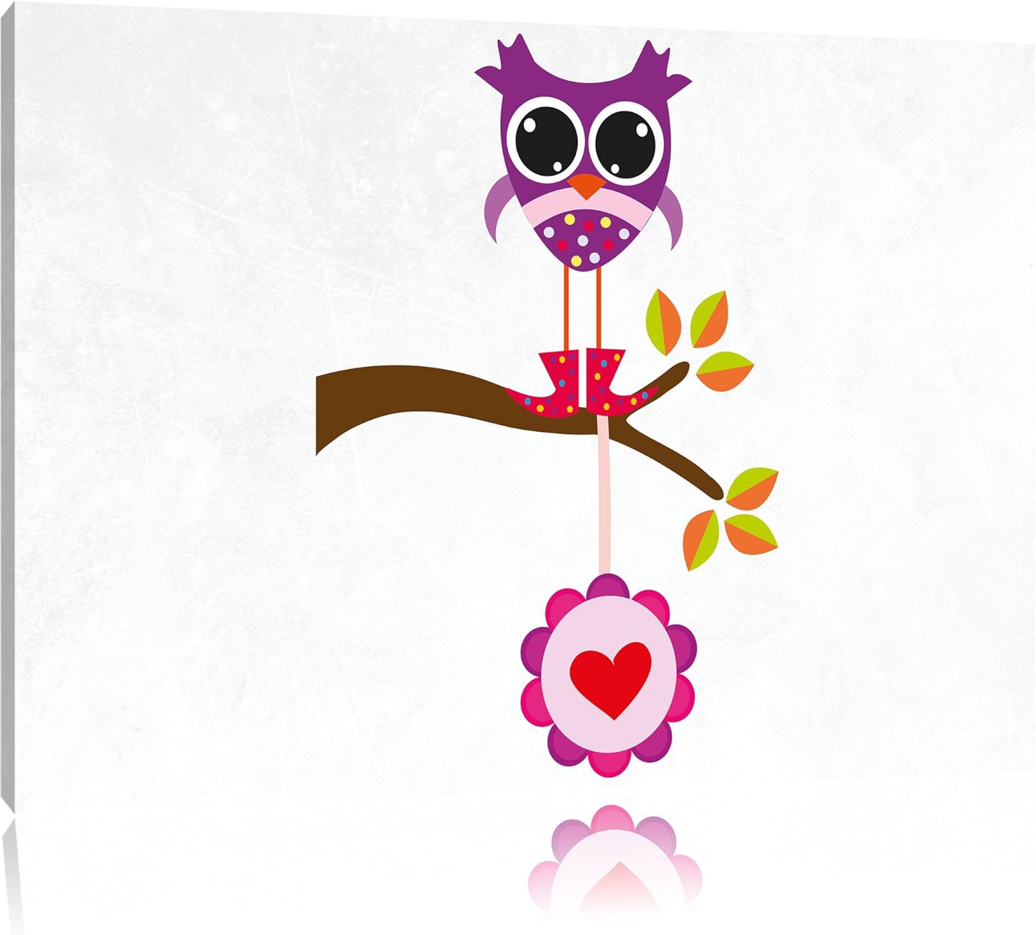Pixxprint Süsse Eule auf AST mit Anhänger als Leinwandbild/Grösse: 100x70 cm/Wandbild/Kunstdruck/fer
