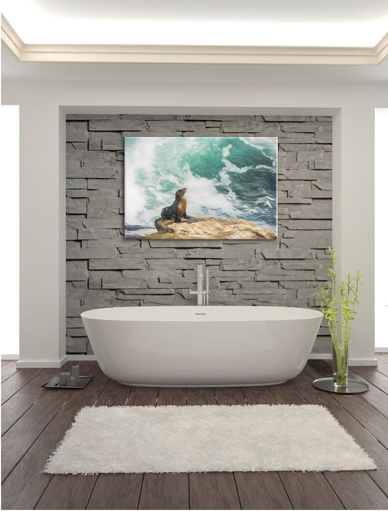 Pixxprint süsse Robbe sonnt Sich Kunst Buntstift Effekt, Format: 100x70 auf Leinwand, XXL riesige Bi