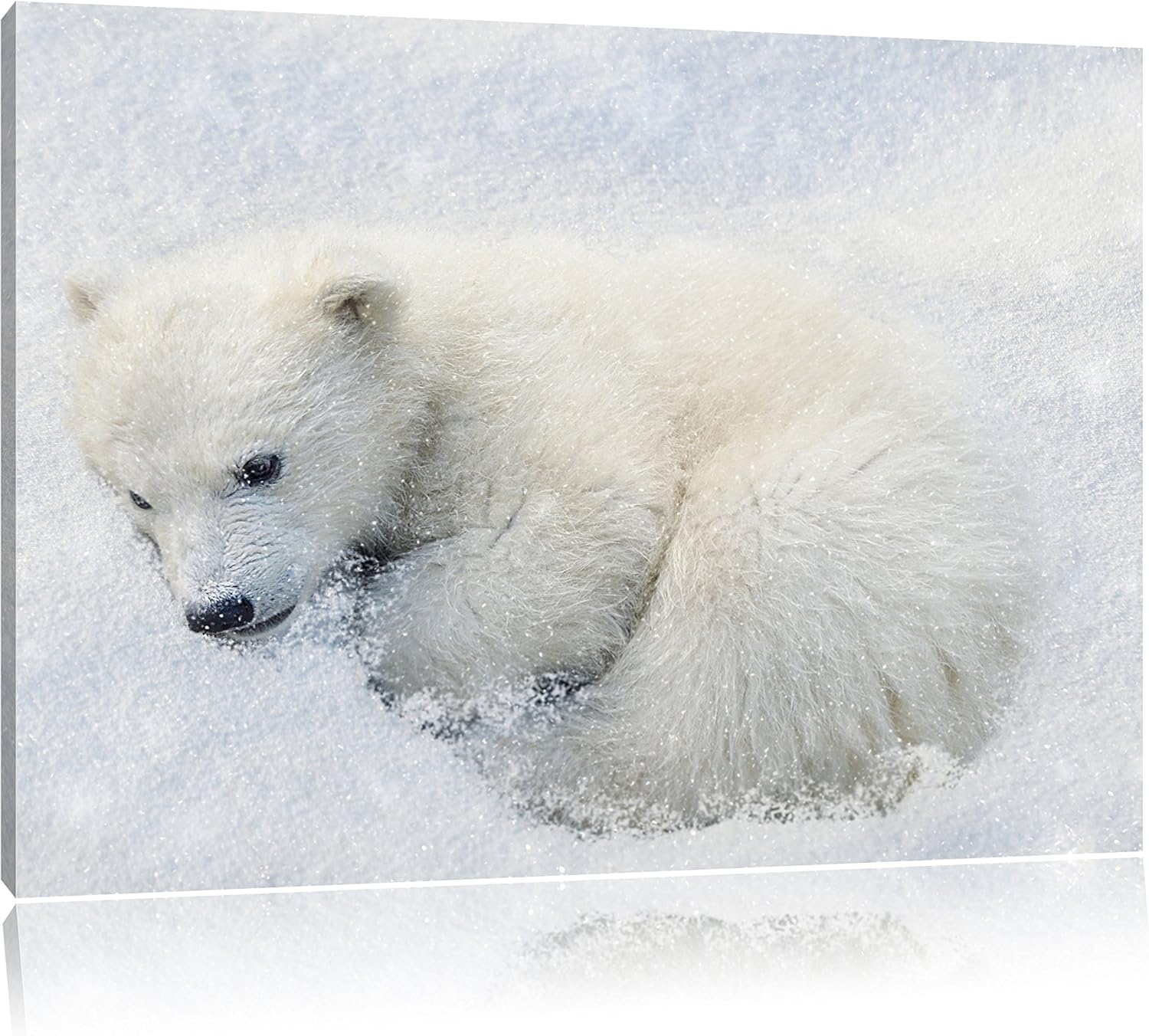 Pixxprint Süsser junger Eisbär im Schnee, Format: 100x70 auf Leinwand, 100x70