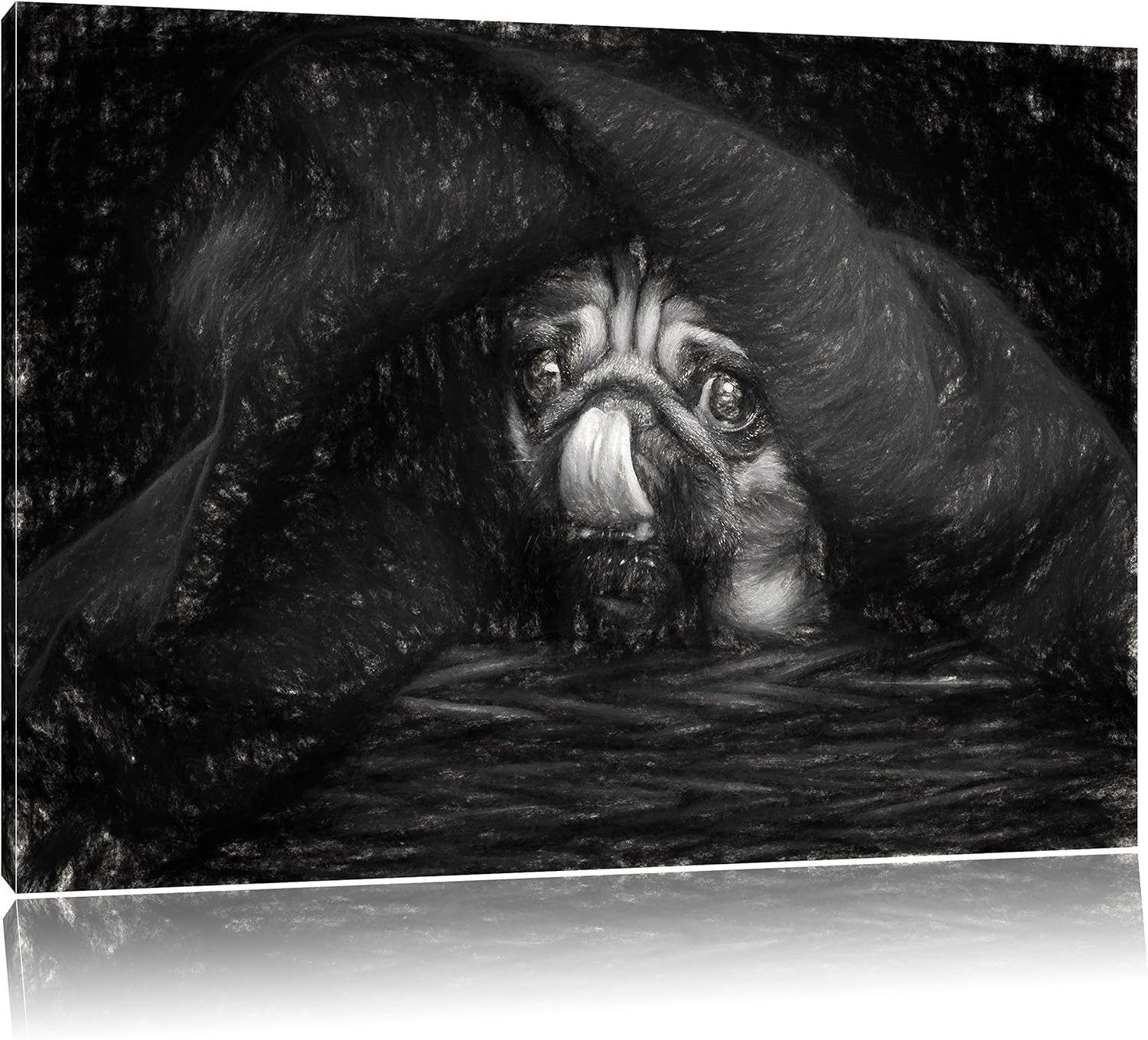 Pixxprint Süsser Mops unter der Decke Kunst als Leinwandbild/Grösse: 100x70 / Wandbild/Kunstdruck/fe