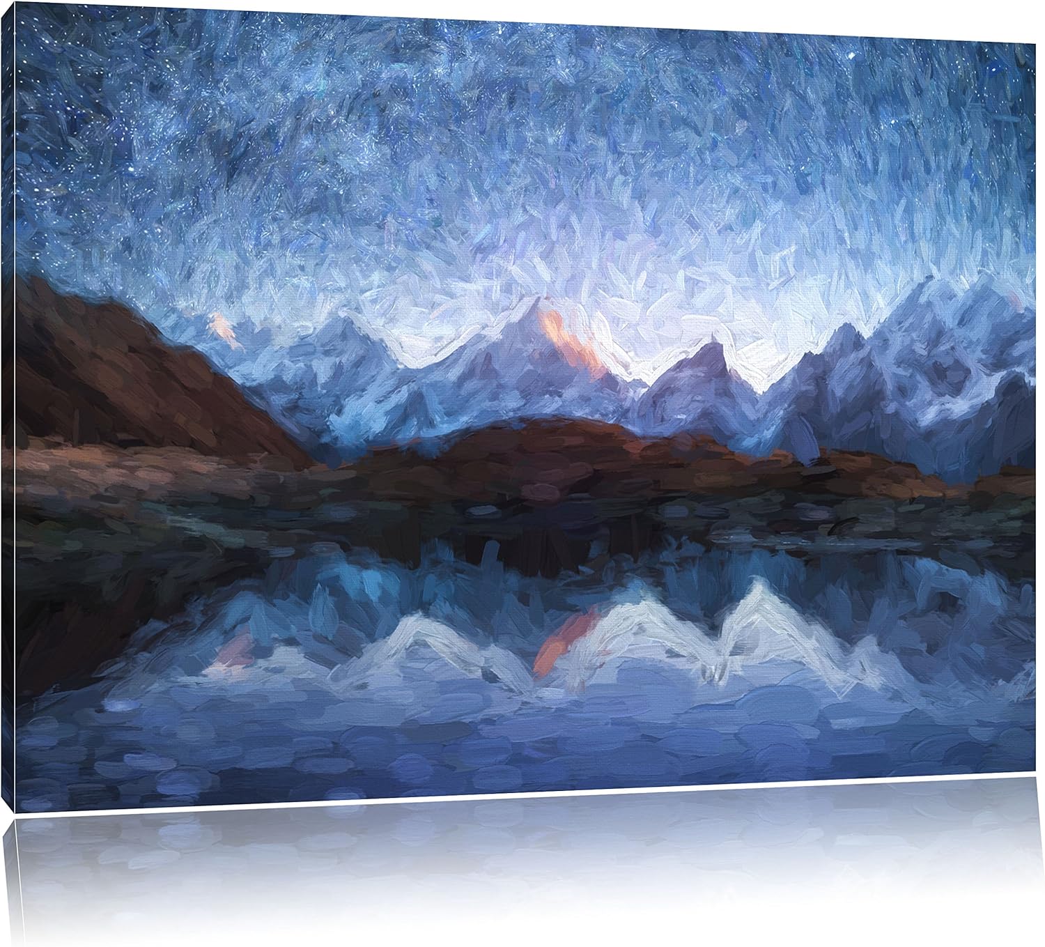 Pixxprint Sternenhimmel über dem Gebirge als Leinwandbild/Grösse: 100x70 cm/Wandbild/Kunstdruck/fert