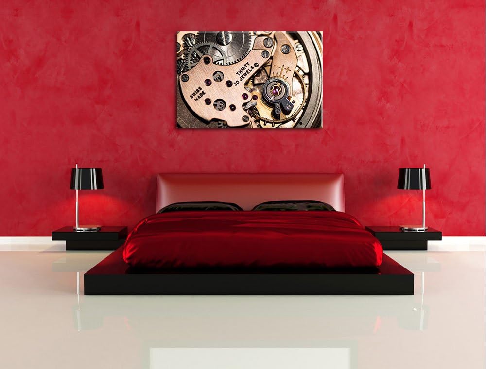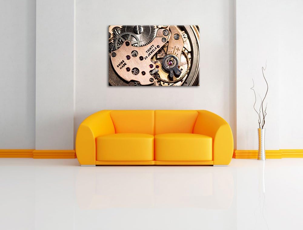 Pixxprint stilvolles Uhrenwerk auf Leinwand, XXL riesige Bilder fertig gerahmt mit Keilrahmen, Kunst