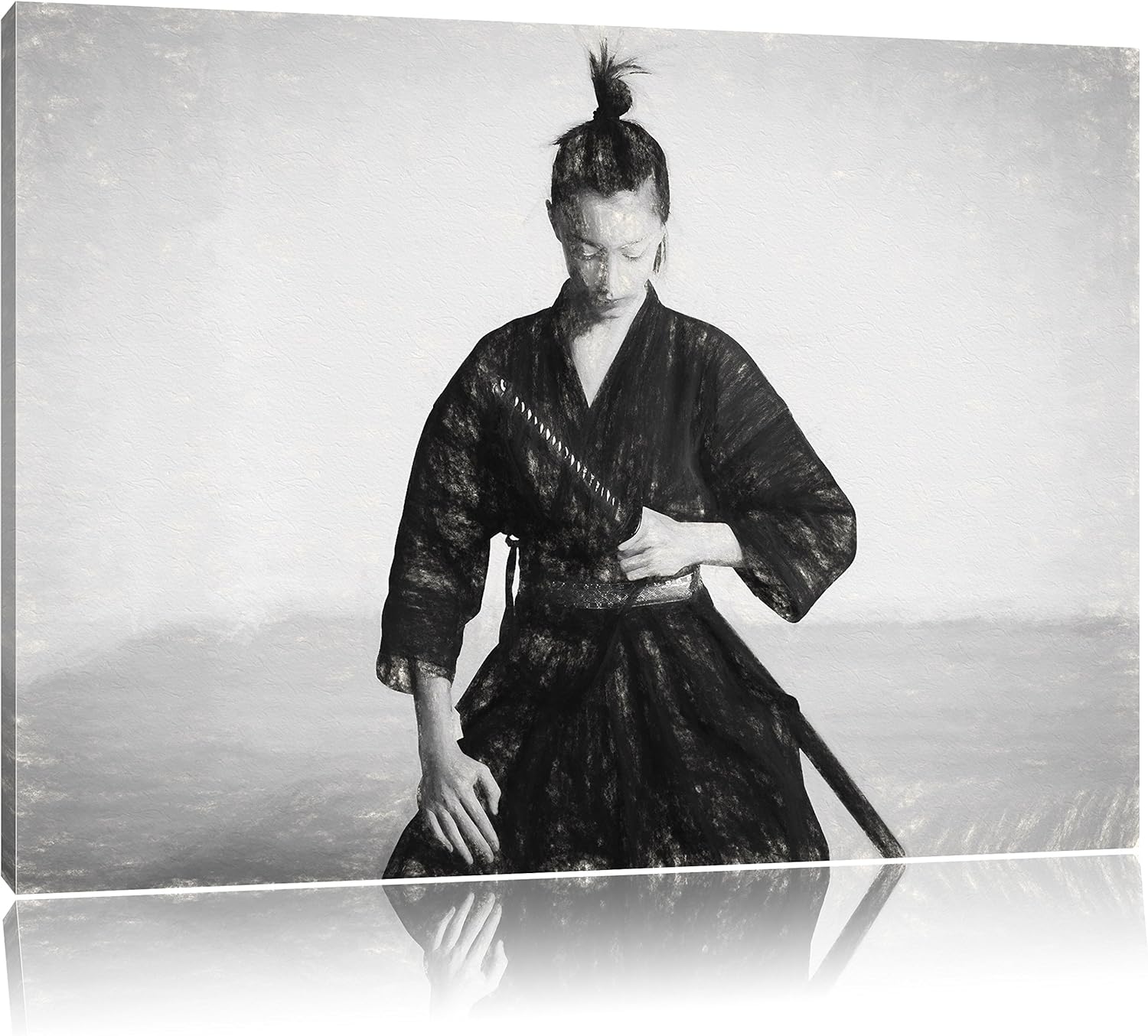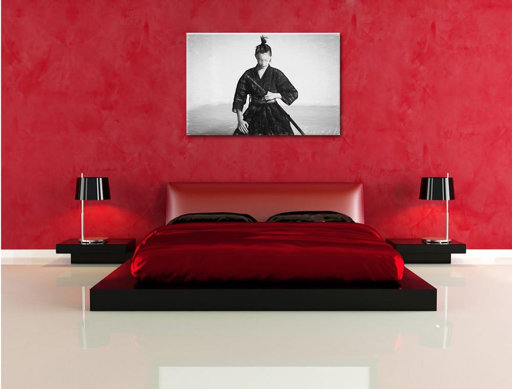 Pixxprint stolze Samurai-Kriegerin Kunst / 100x70cm Leinwandbild bespannt auf Holzrahmen/Wandbild Ku