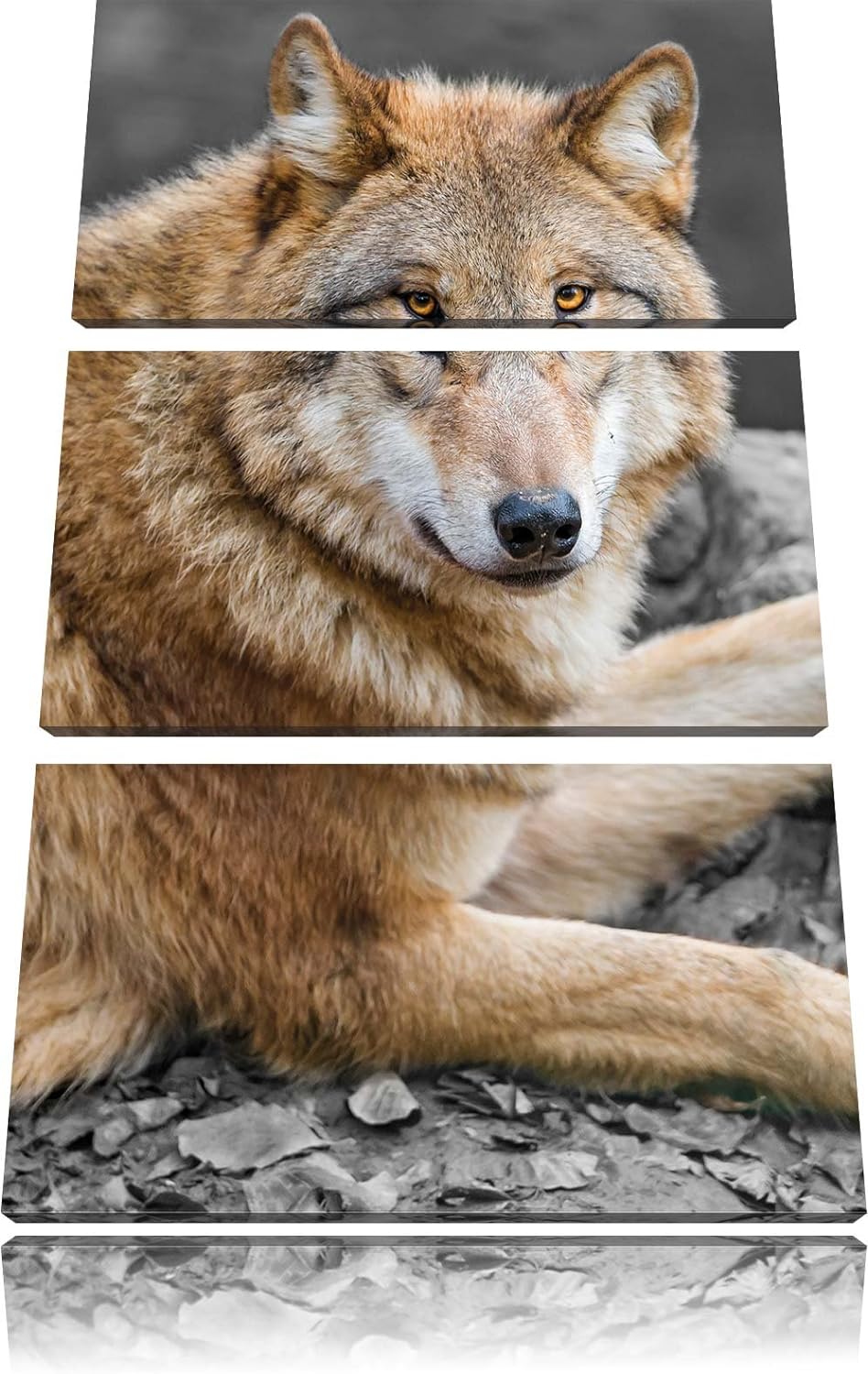 Pixxprint stolzer Wolf auf Stein als Leinwandbild/Grösse: 3 Teilig (120x80) cm/Wandbild/Kunstdruck/f