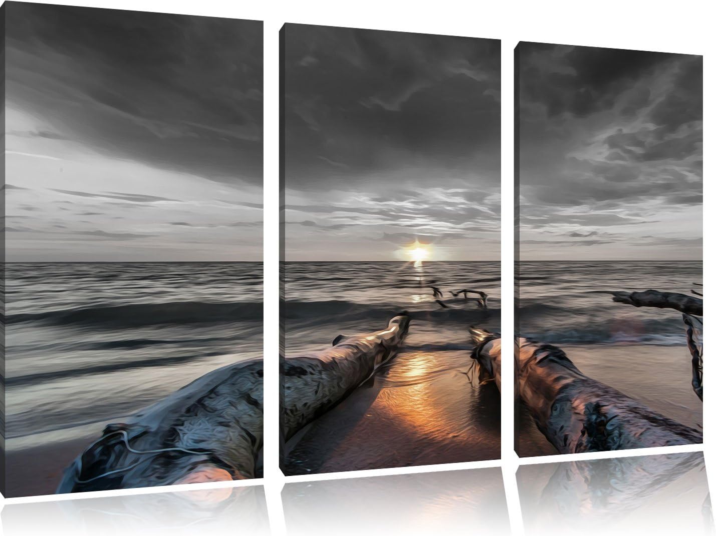 Pixxprint Strand Öl Effekt B&W Detail 3-Teiler Leinwandbild 120x80 Bild auf Leinwand
