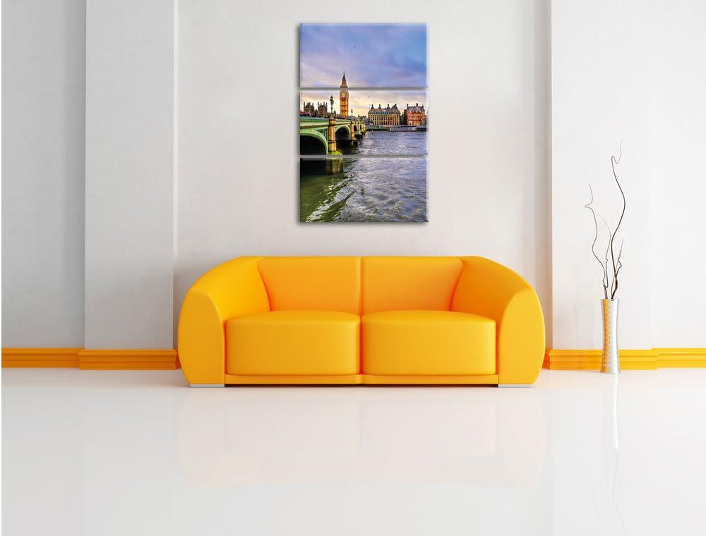 Pixxprint Themse London Big Ben als Leinwandbild/Grösse: 3 Teilig (120x80) cm/Wandbild/Kunstdruck/fe